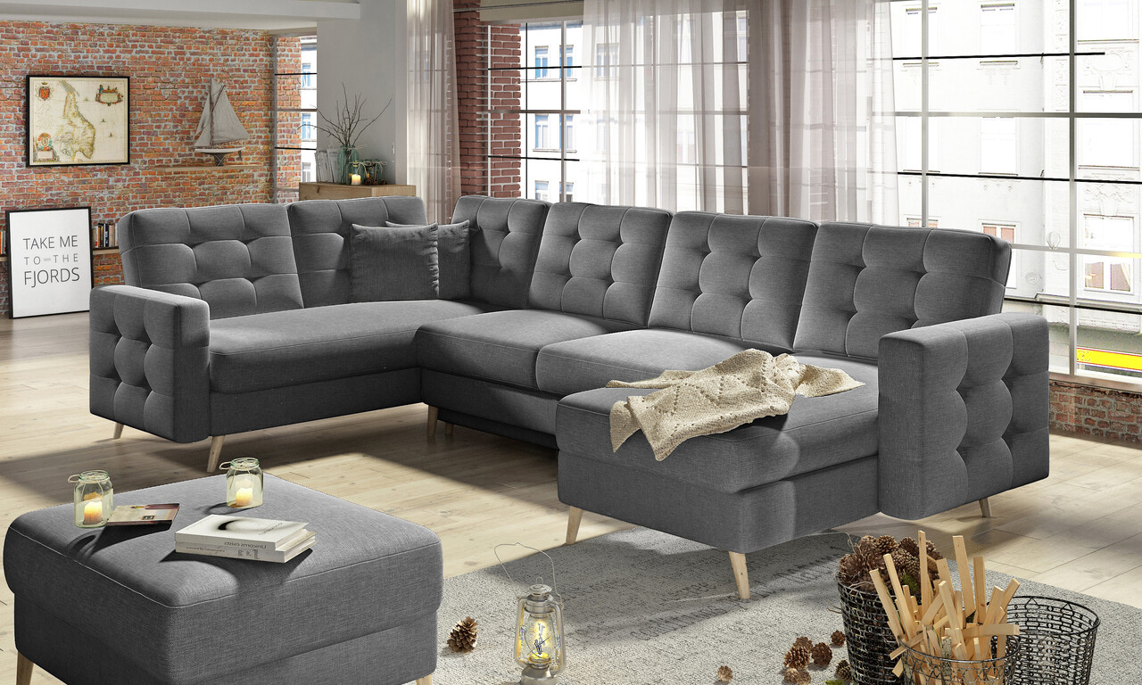 Coltar extensibil reversibil 5 locuri ELTAP, AsdU-26, Asgard, 326x202x93 cm, lemn/poliester, gri inchis