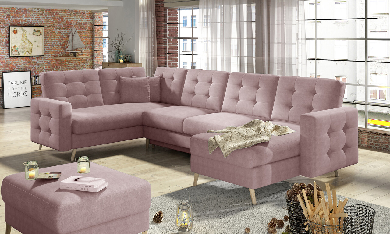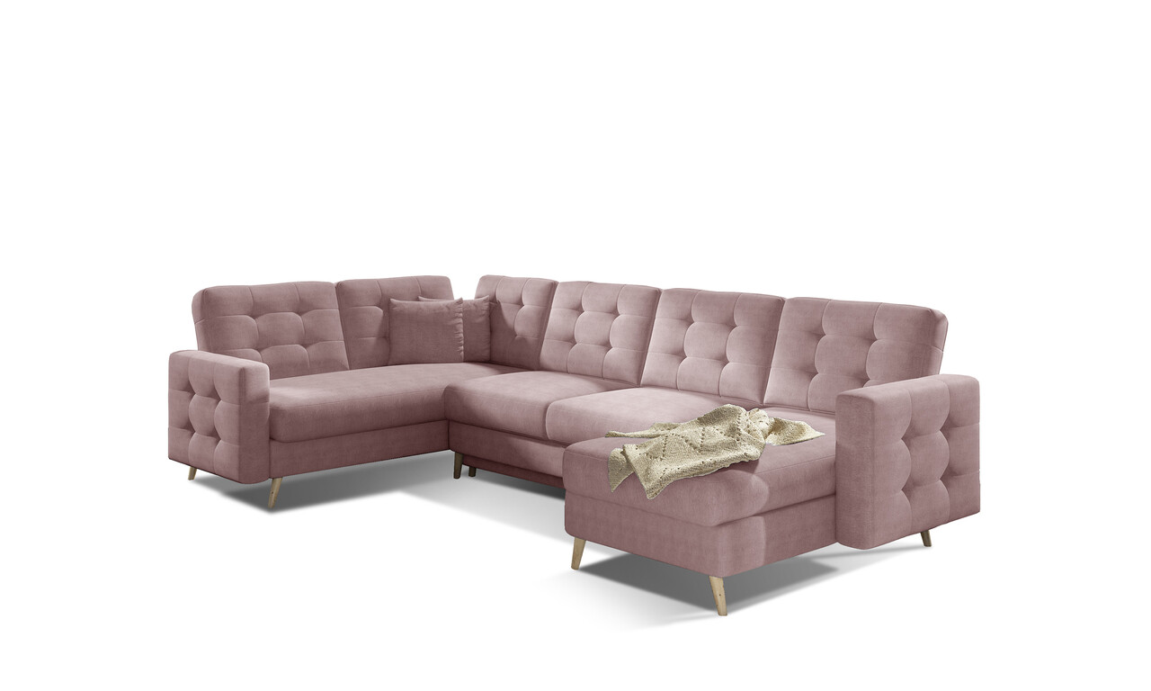 Coltar extensibil reversibil 5 locuri ELTAP, AsdU-33, Asgard, 326x202x93 cm, lemn/poliester, roz