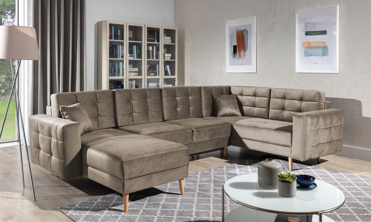 Coltar extensibil reversibil 5 locuri ELTAP, AsdU-53, Asgard, 326x202x93 cm, lemn/poliester, maro deschis