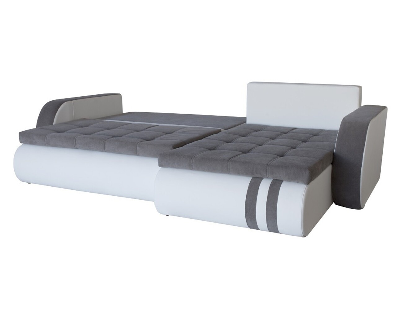 Coltar extensibil reversibil Atlanta Gri/Alb, cu lada de depozitare, 280x180x80 cm