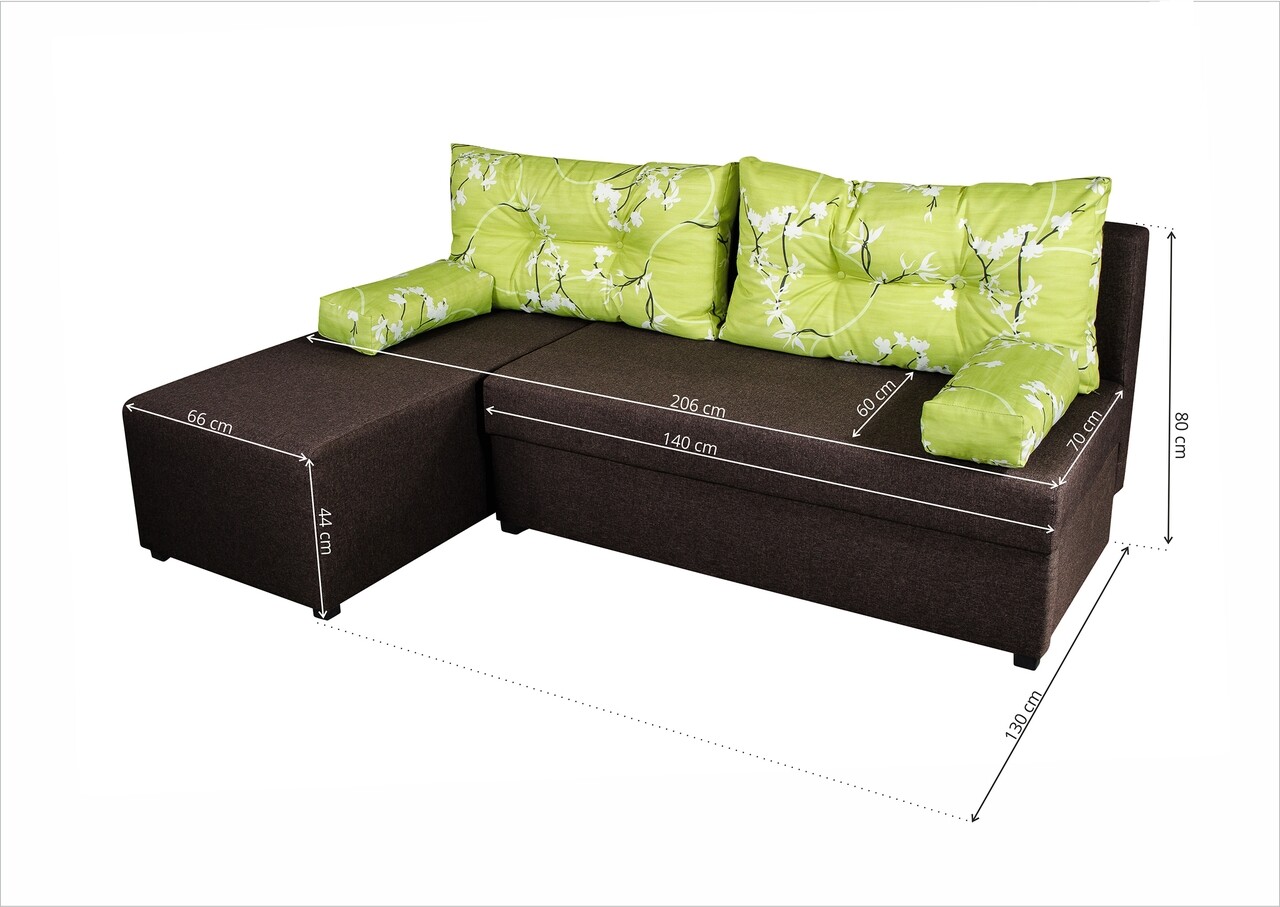 Coltarul extensibil Modena Coffee Jasmine Flower poate fi folosit cu usurinta si sub forma de pat, suprafata de dormit fiind de 140 x 206 cm.