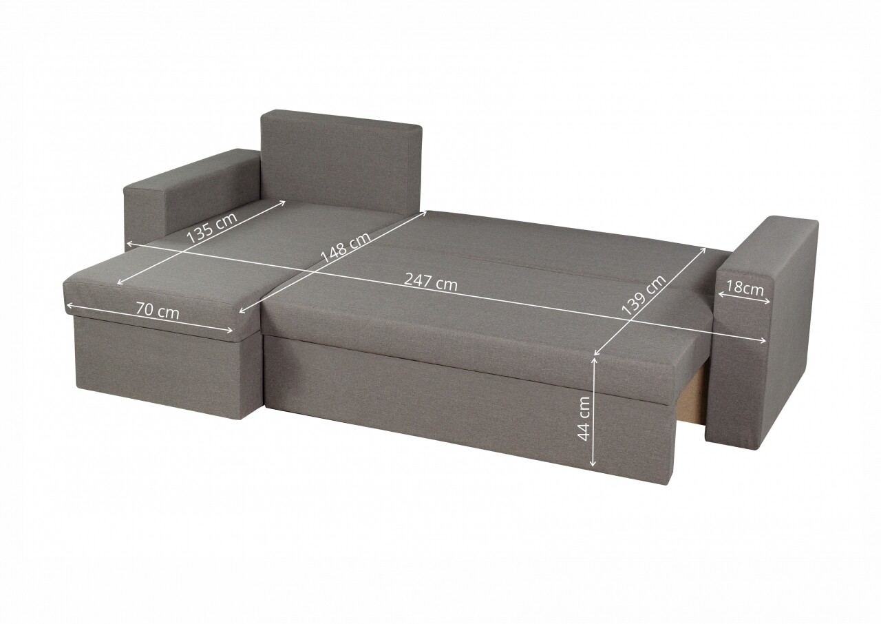 Coltar extensibil reversibil Oslo Grey, cu lada de depozitare, 247x148x78 cm, Grey Flower