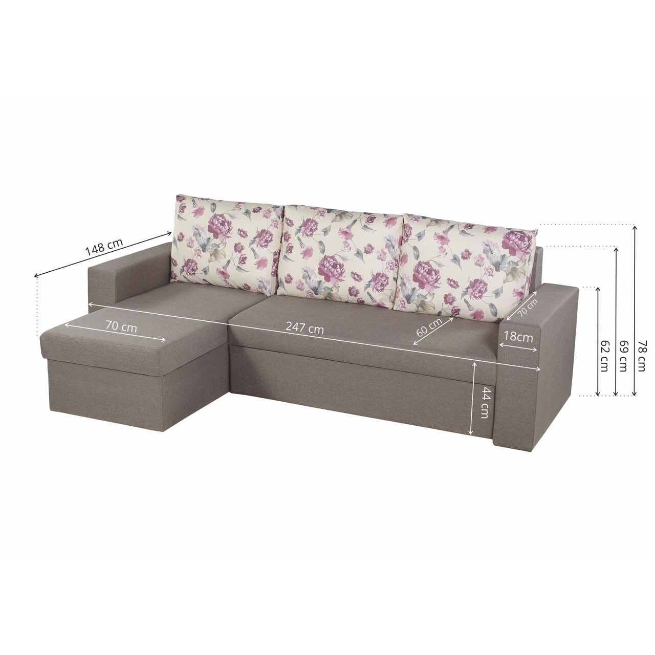 Coltar extensibil reversibil Oslo Grey Purple Flower Bedora, cu lada de depozitare, 247x148x78 cm