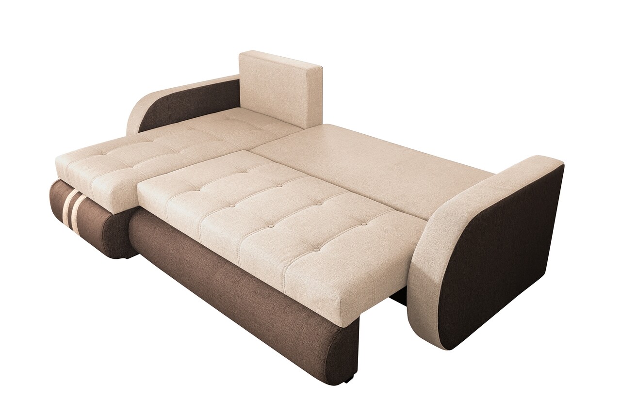 Coltar extensibil reversibil Siena Duo Maro/Bej 243x141x81 cm cu lada de depozitare