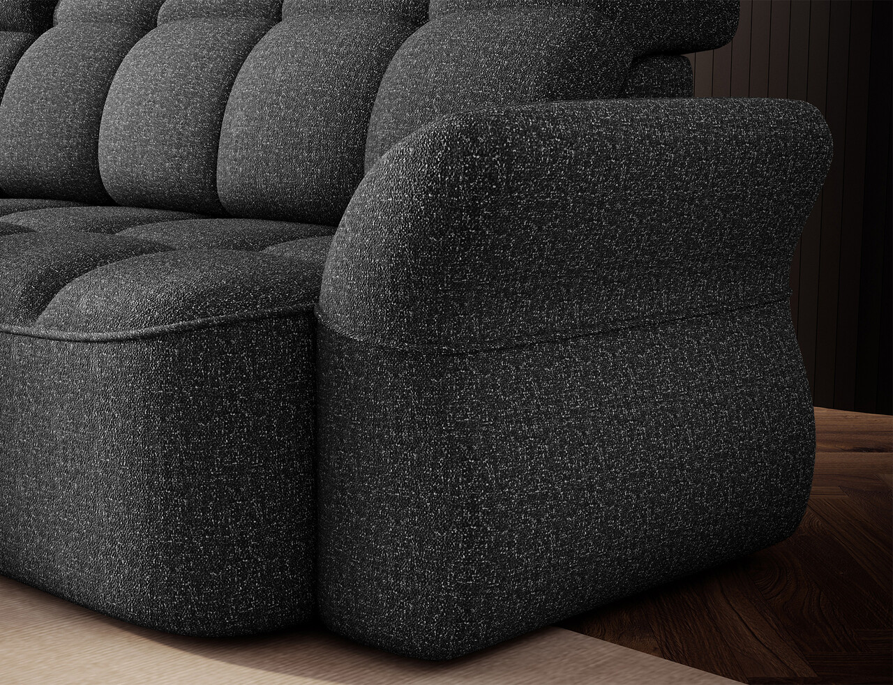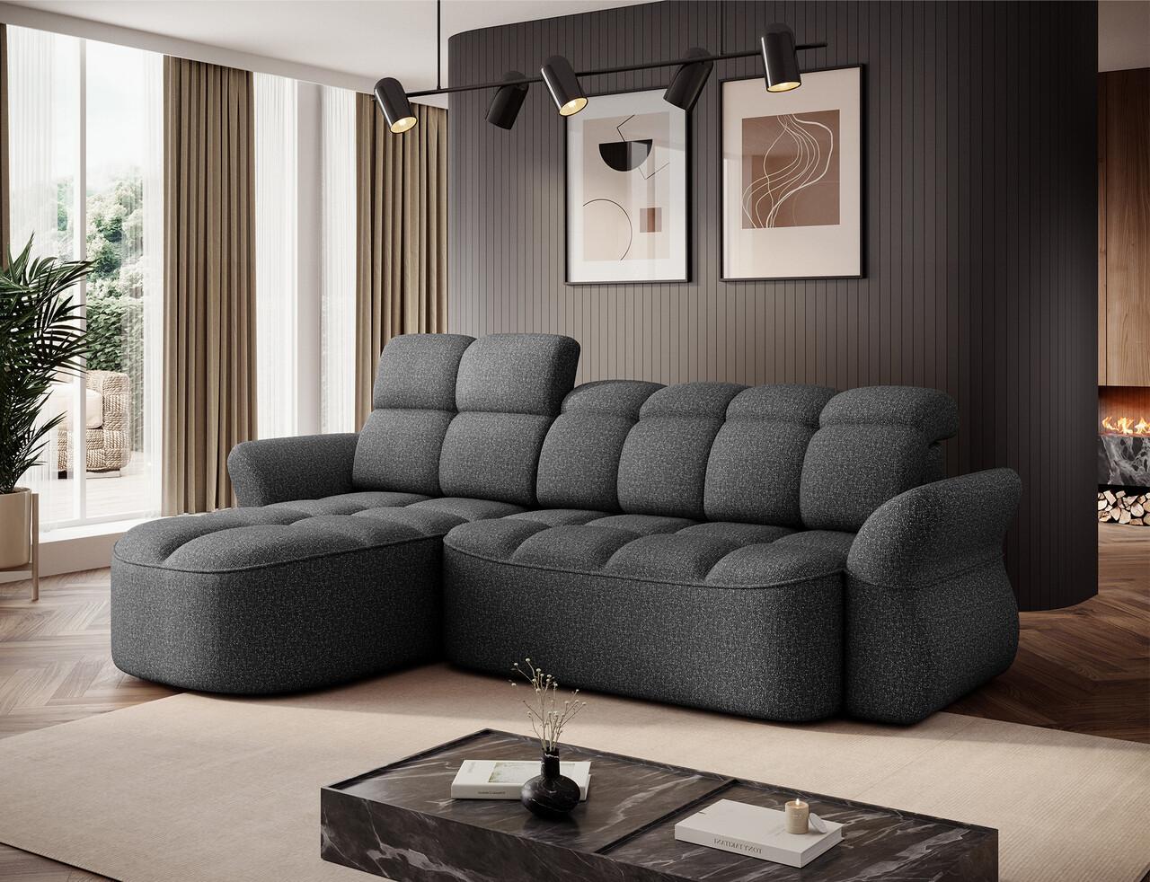 Coltar extensibil stanga 3 locuri ELTAP, Beneth, 301x185x115 cm, lemn/poliester, gri inchis