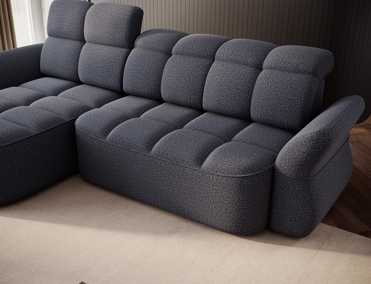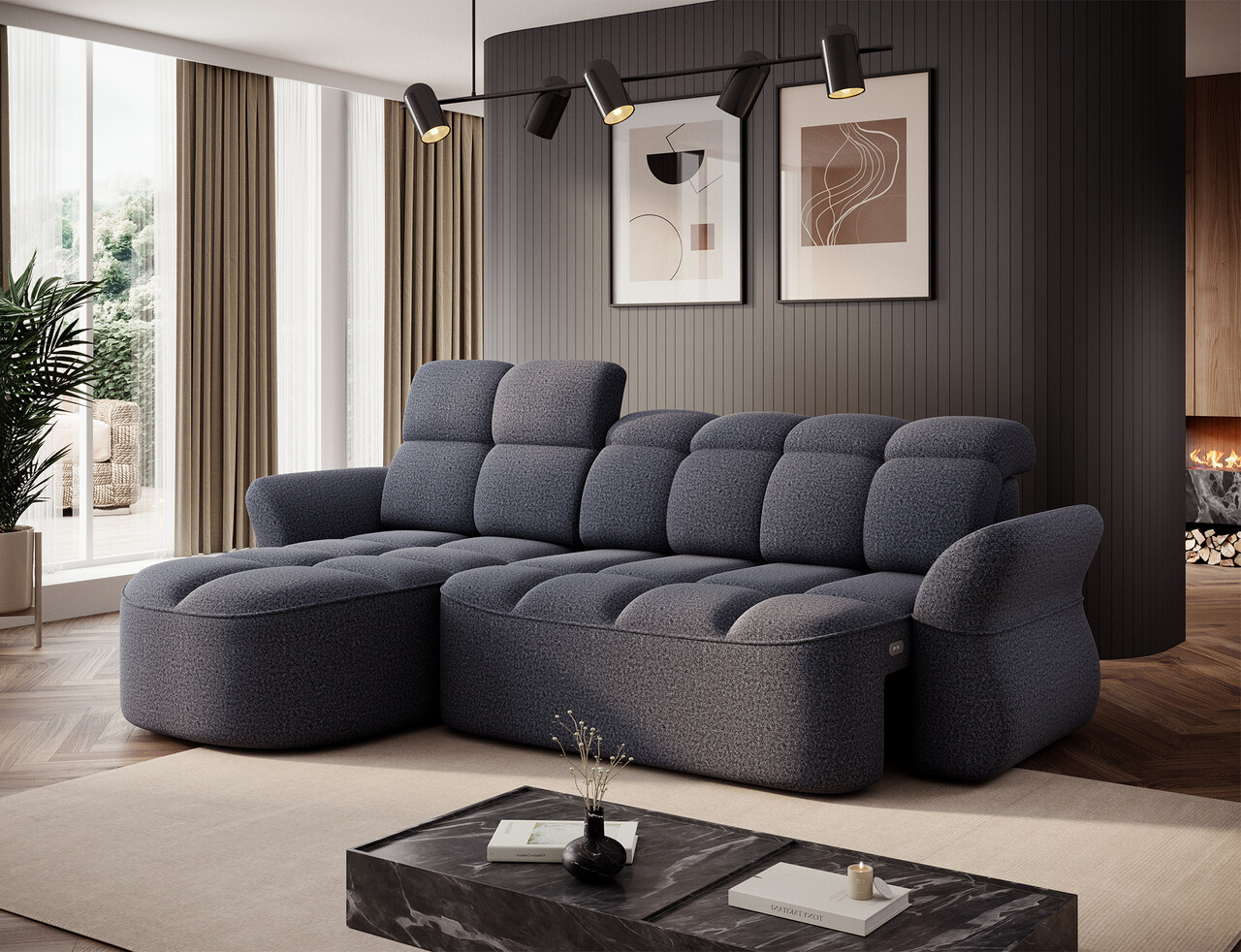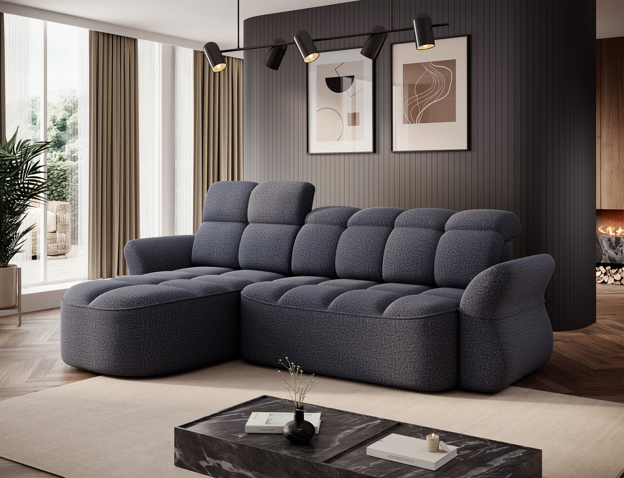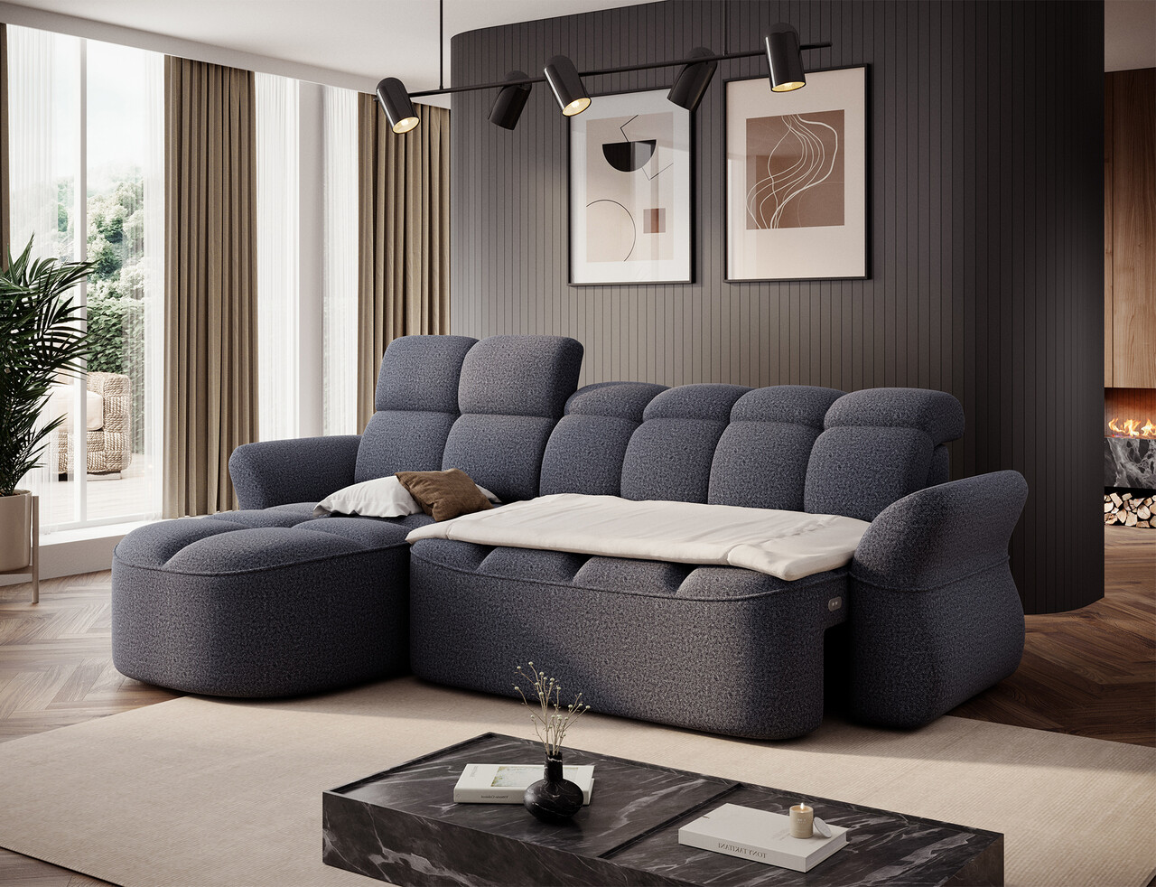 Coltar extensibil stanga 3 locuri ELTAP, Beneth, 301x185x115 cm, lemn/poliester, albastru