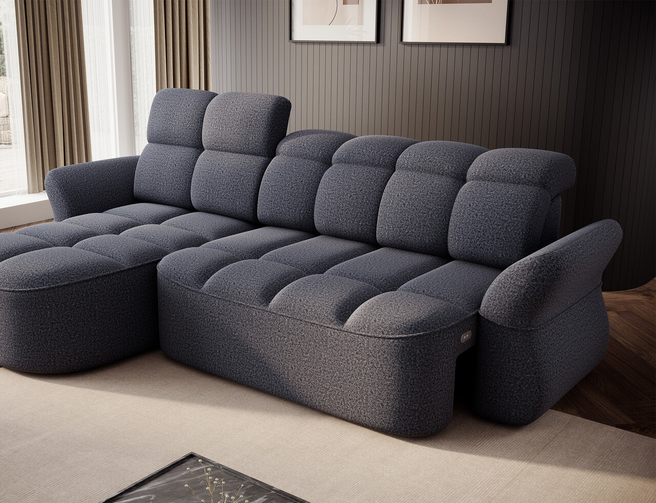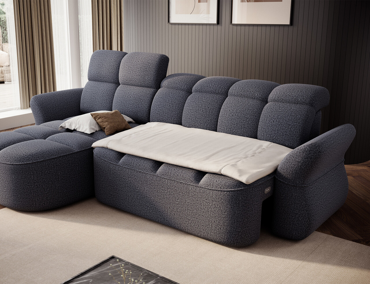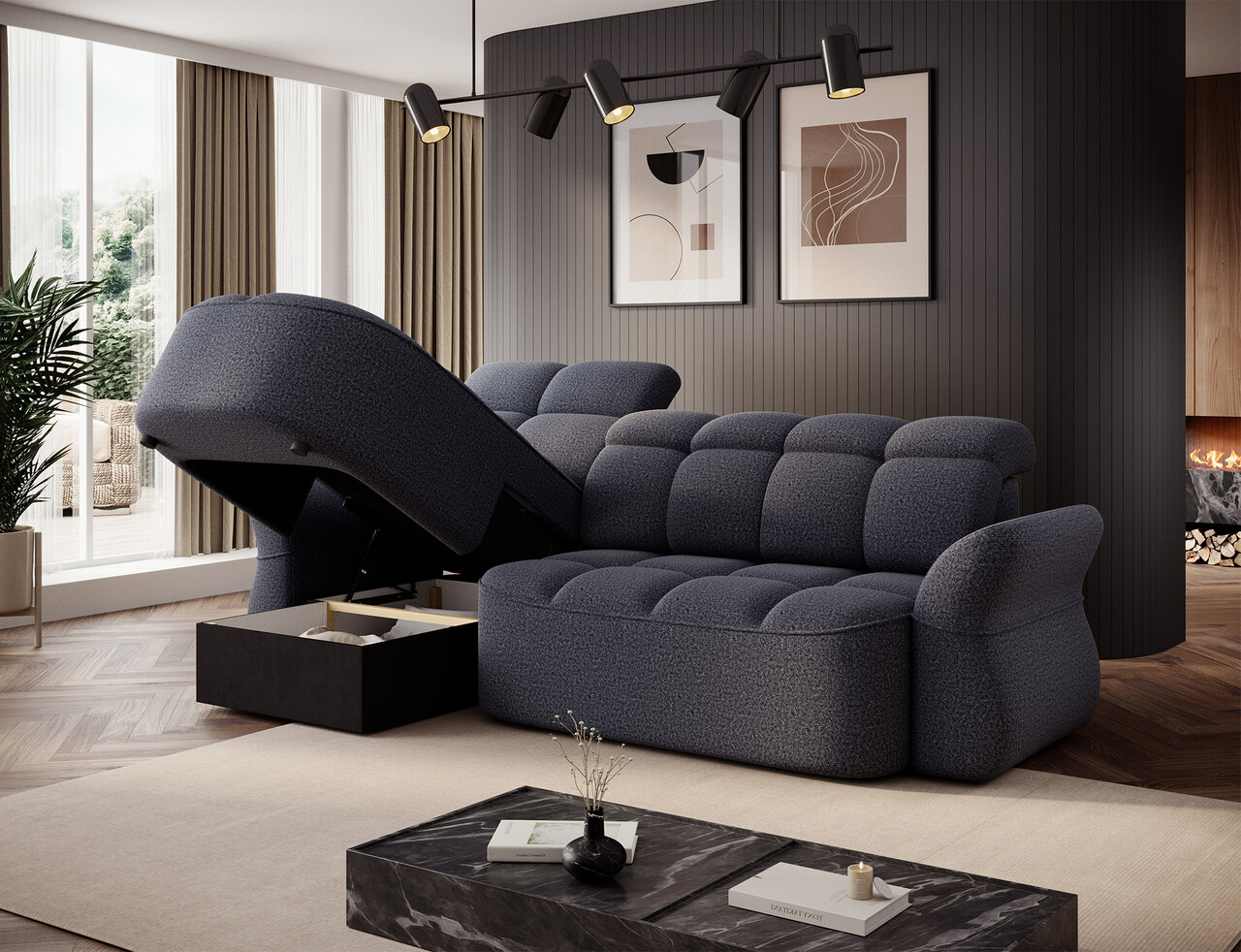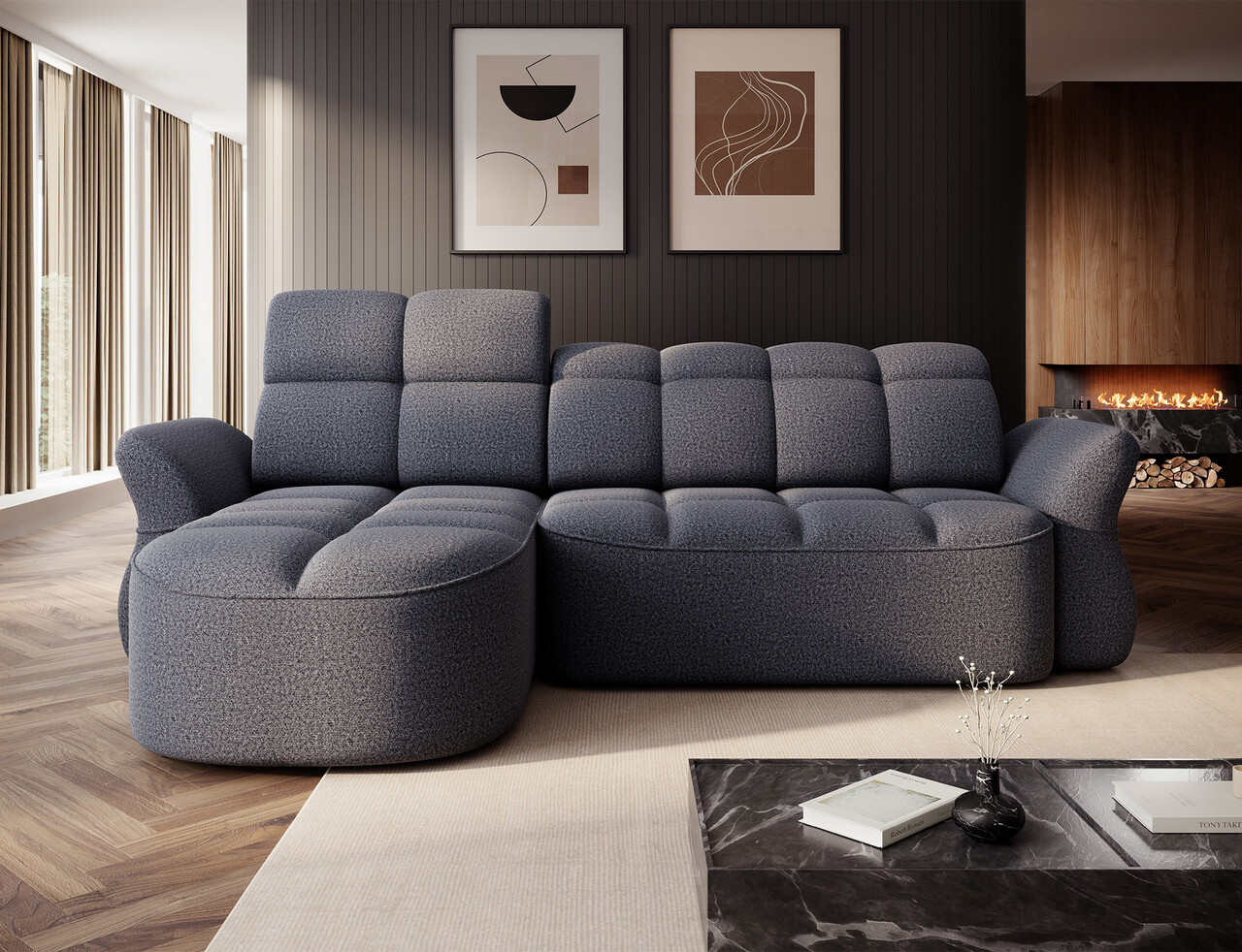 Coltar extensibil stanga 3 locuri ELTAP, Beneth, 301x185x115 cm, lemn/poliester, albastru