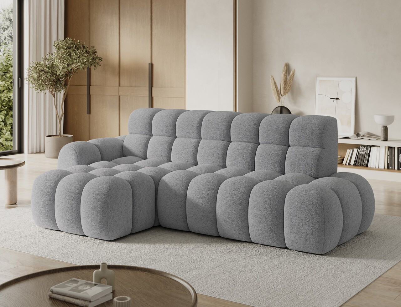 Coltar extensibil stanga 3 locuri ELTAP, Ceedro, 283x165x98 cm, lemn/poliester, gri deschis