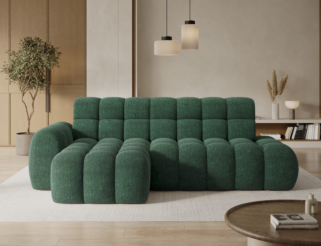 Coltar extensibil stanga 3 locuri ELTAP, Ceedro, 283x165x98 cm, lemn/poliester, verde inchis