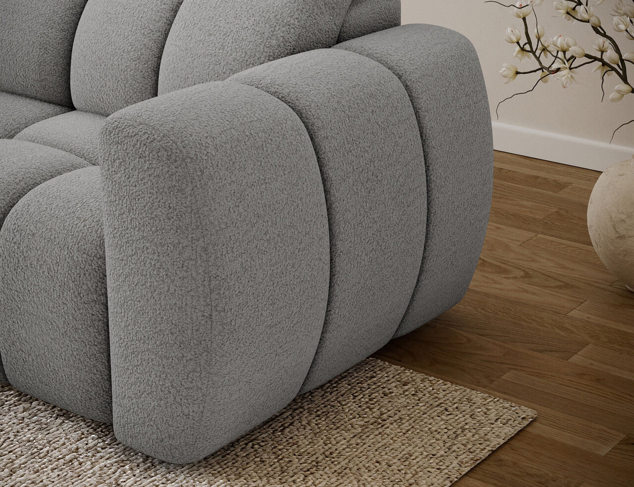 Coltar extensibil stanga 3 locuri ELTAP, Fanito, 288x200x105 cm, lemn/poliester, gri deschis