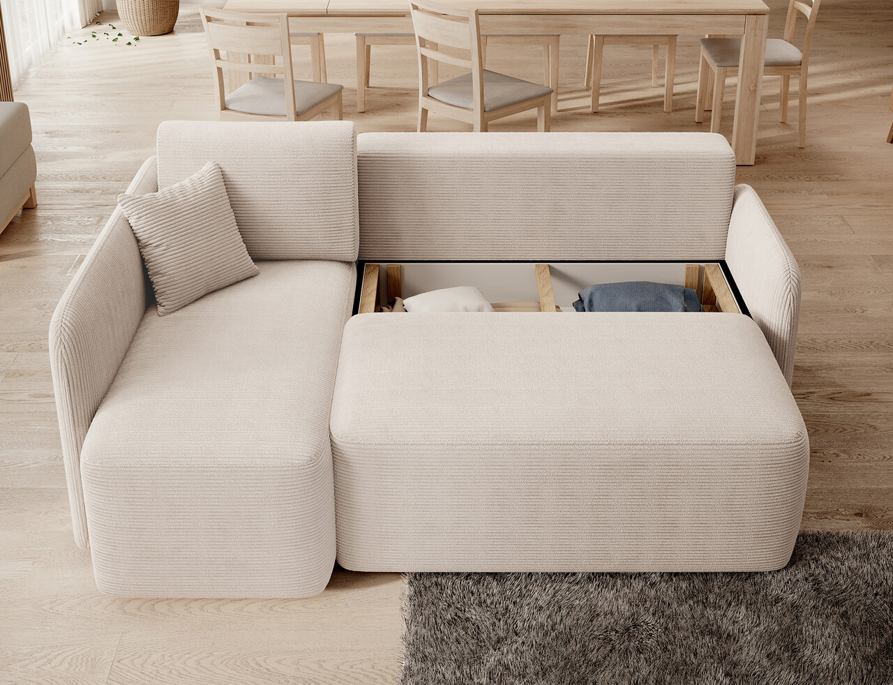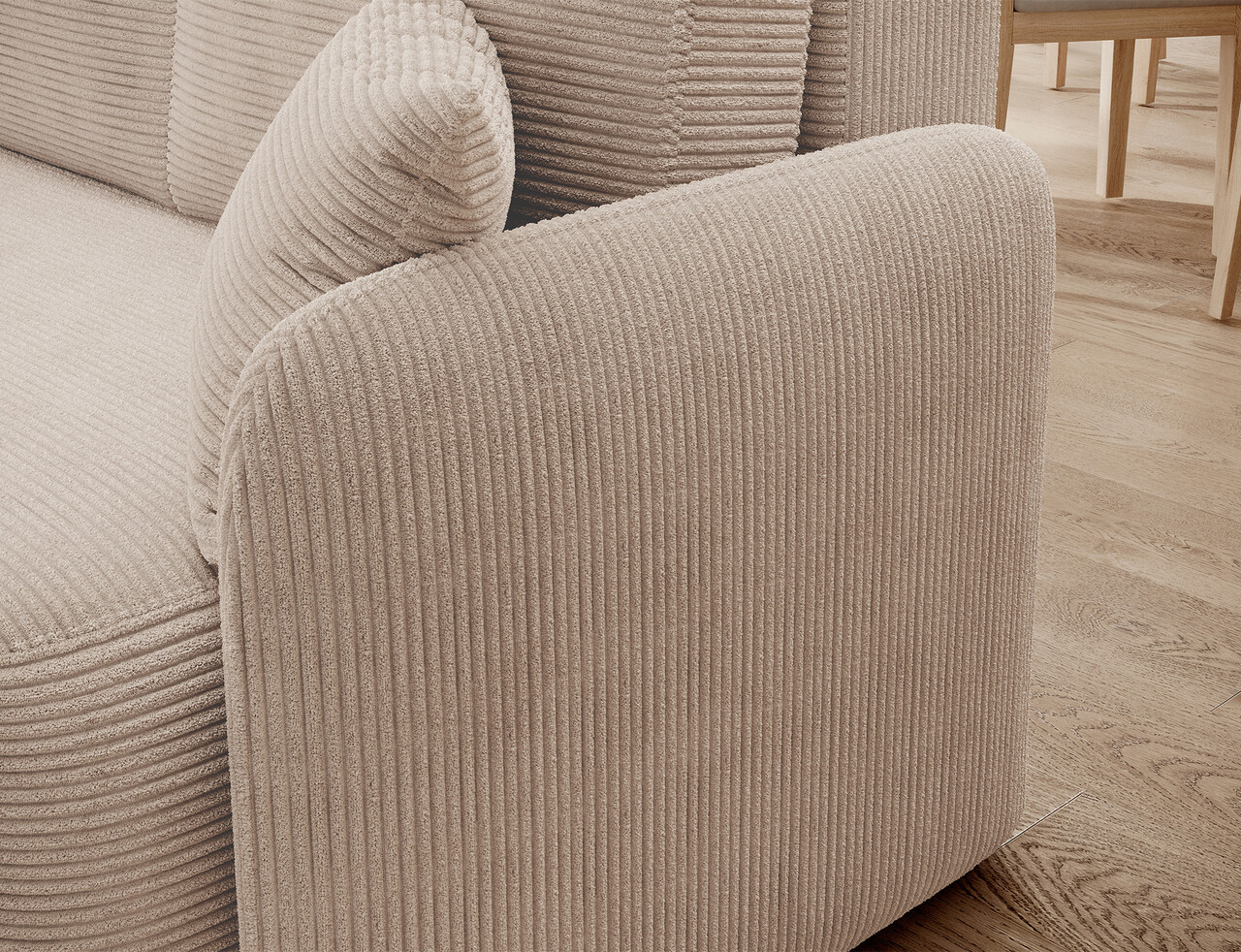Coltar extensibil stanga 3 locuri ELTAP, Hadson, 206x150x89 cm, lemn/poliester, bej deschis