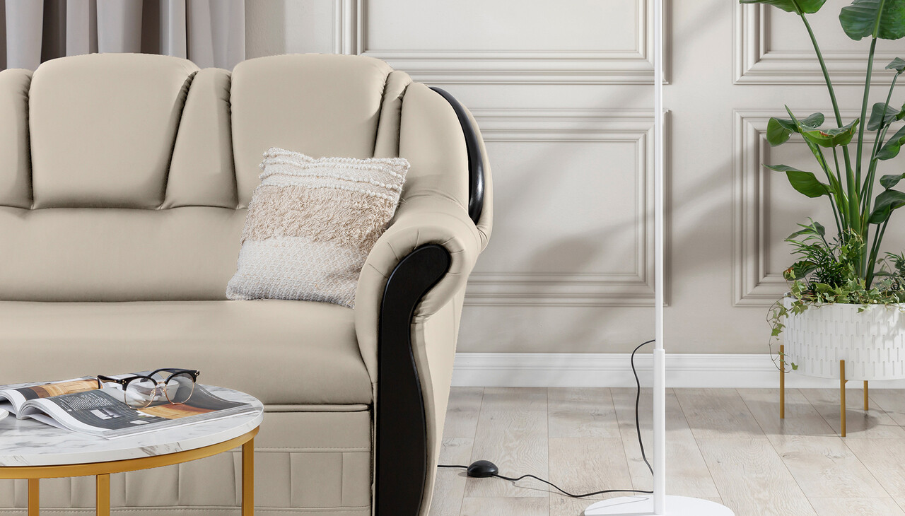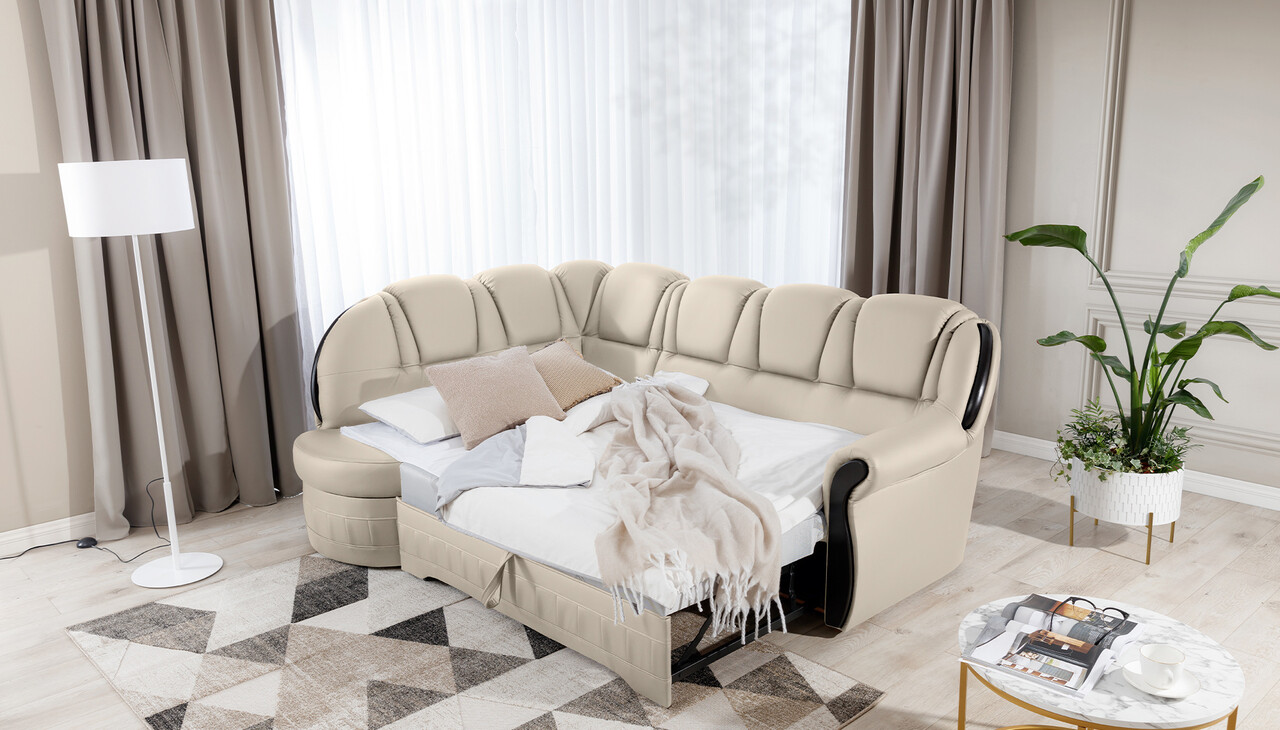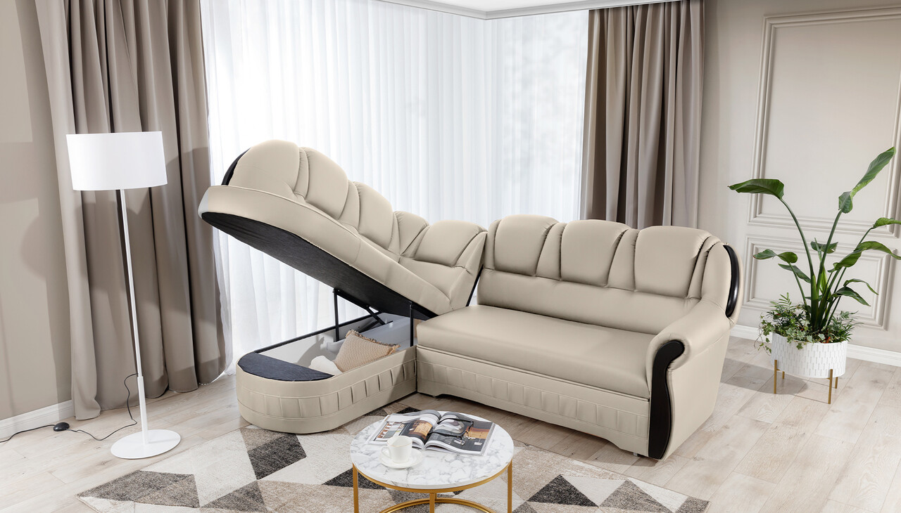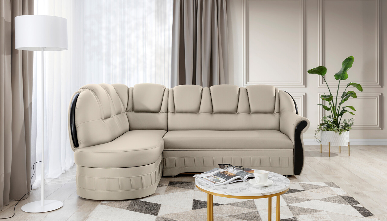 Coltar extensibil stanga 3 locuri ELTAP, L-055, Lord, 243x180x112 cm, lemn/poliester, crem/negru