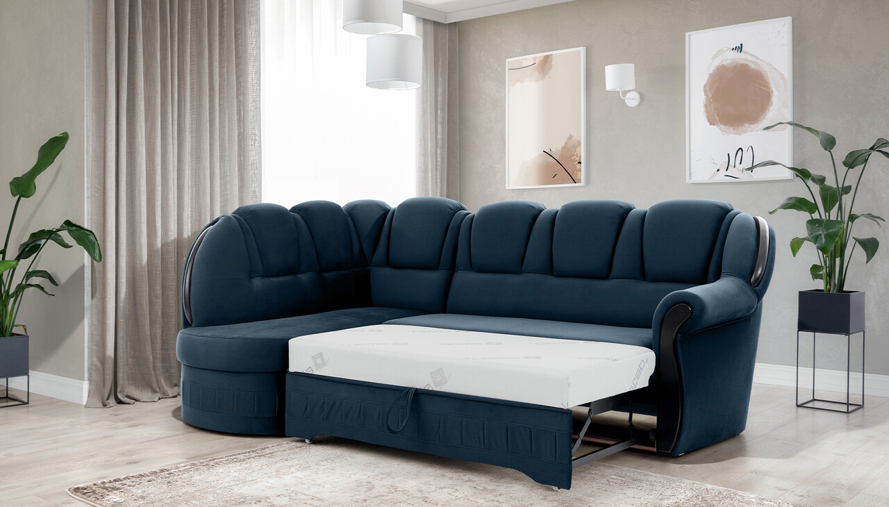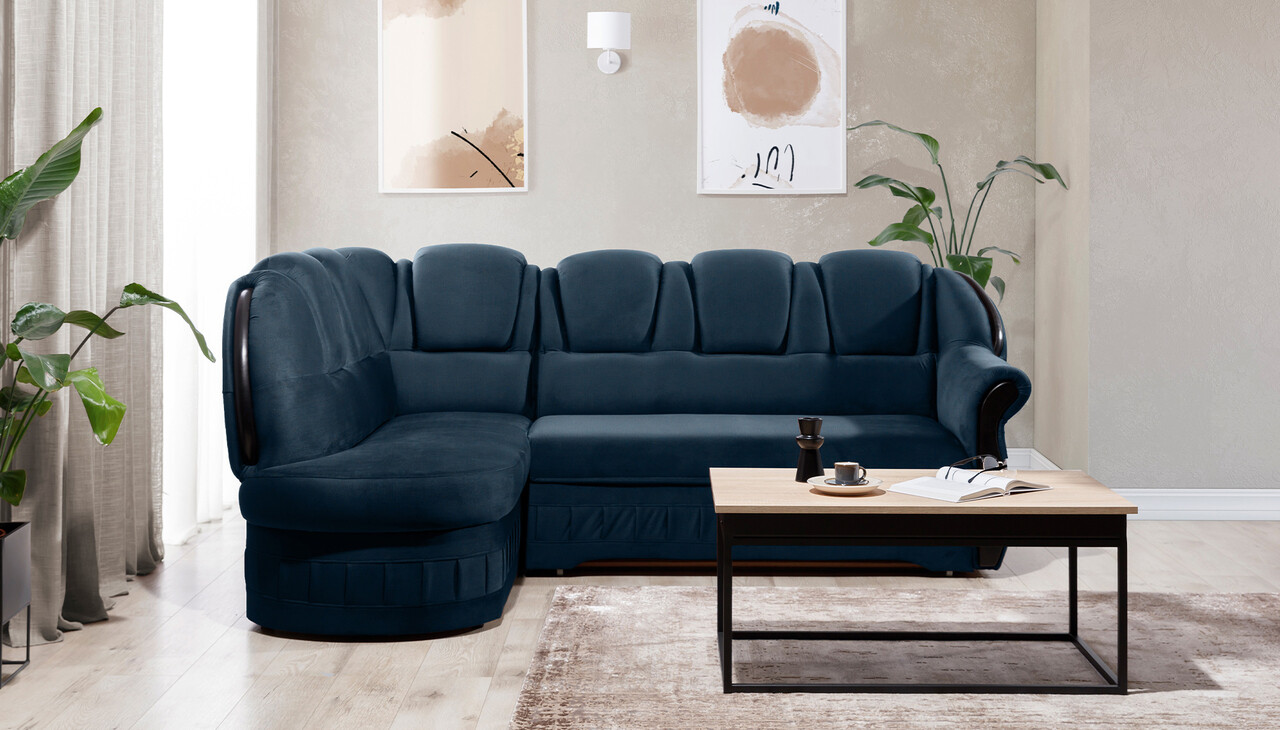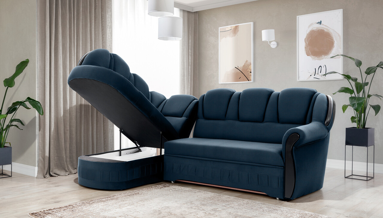 Coltar extensibil stanga 3 locuri ELTAP, L-078, Lord, 243x180x112 cm, lemn/poliester, albastru inchis/negru