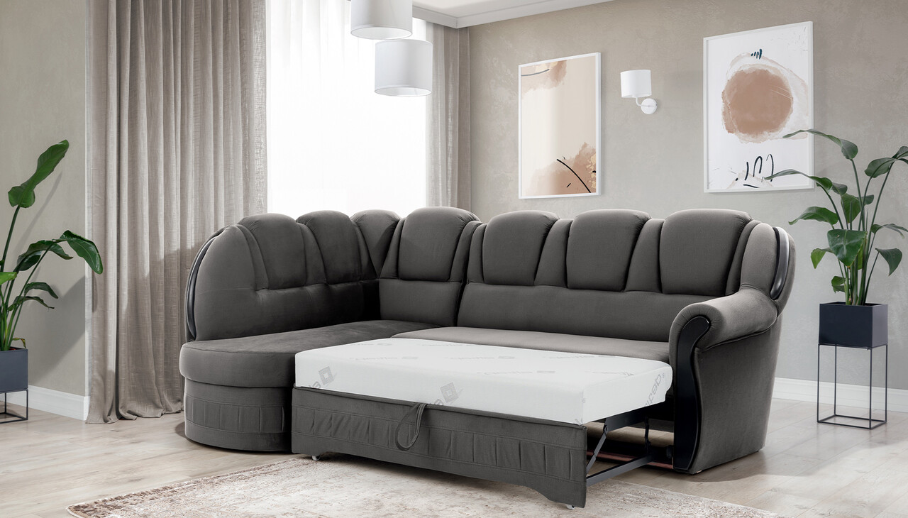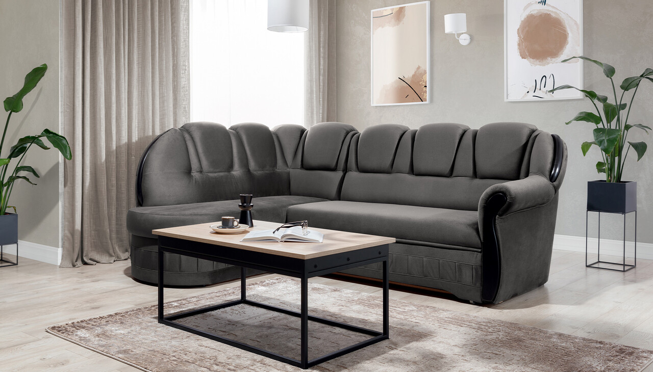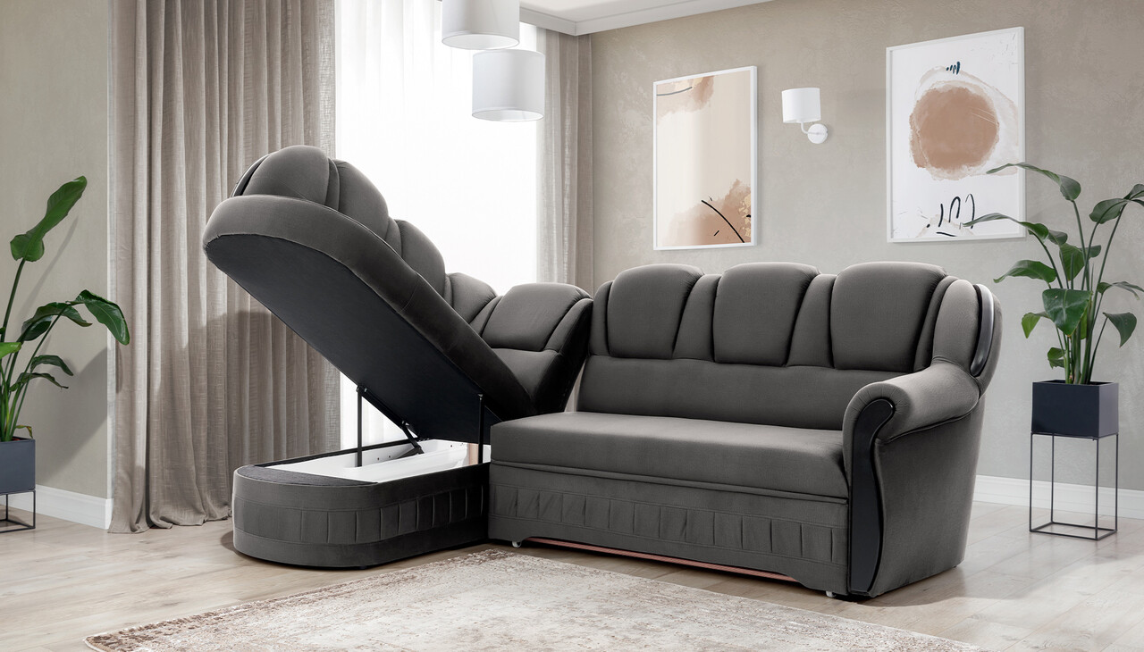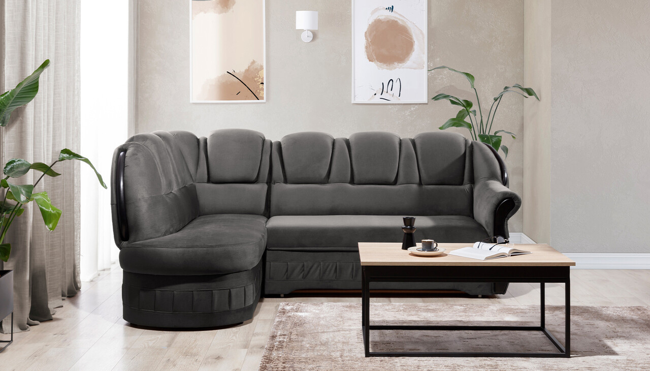 Coltar extensibil stanga 3 locuri ELTAP, L-084, Lord, 243x180x112 cm, lemn/poliester, gri/negru
