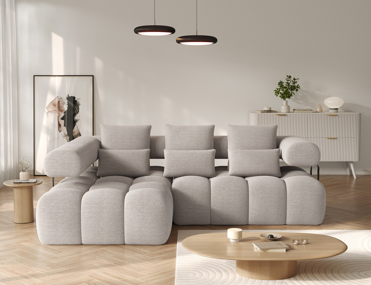 Coltar extensibil stanga 3 locuri ELTAP, Levvi, 260x184x102 cm, lemn/poliester, bej inchis