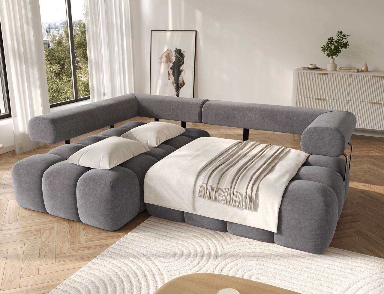Coltar extensibil stanga 3 locuri ELTAP, Levvi, 260x184x102 cm, lemn/poliester, gri inchis