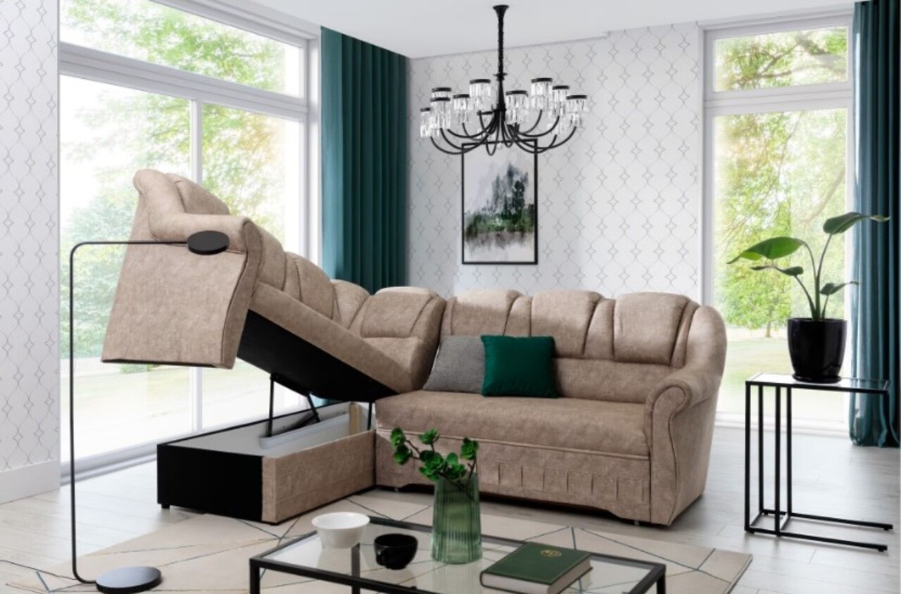 Coltar extensibil stanga 3 locuri ELTAP, LII-093, Lord II, 243x195x112 cm, lemn/poliester, verde inchis