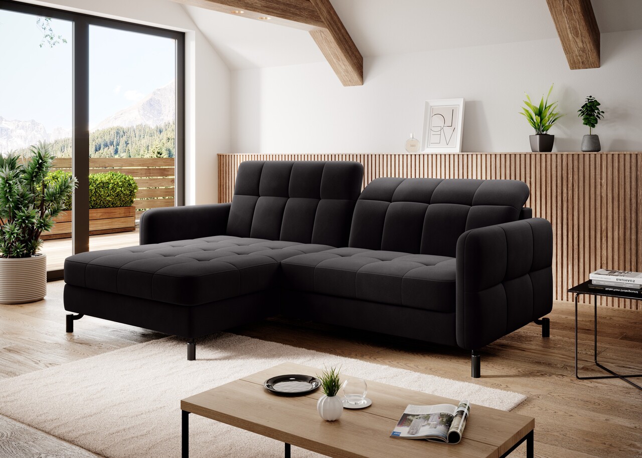 Coltar extensibil stanga 3 locuri ELTAP, Lore-37, Lorelle, 225x160x105 cm, lemn/poliester, negru
