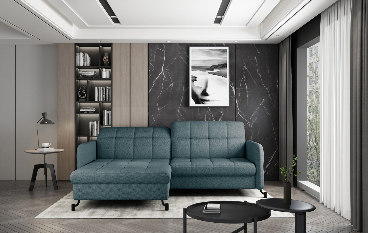 Coltar extensibil stanga 3 locuri ELTAP, Lore-44, Lorelle, 225x160x105 cm, lemn/poliester, albastru