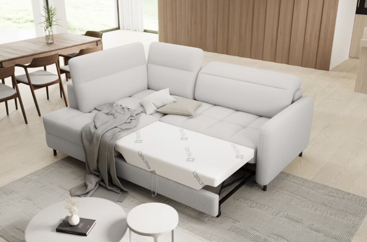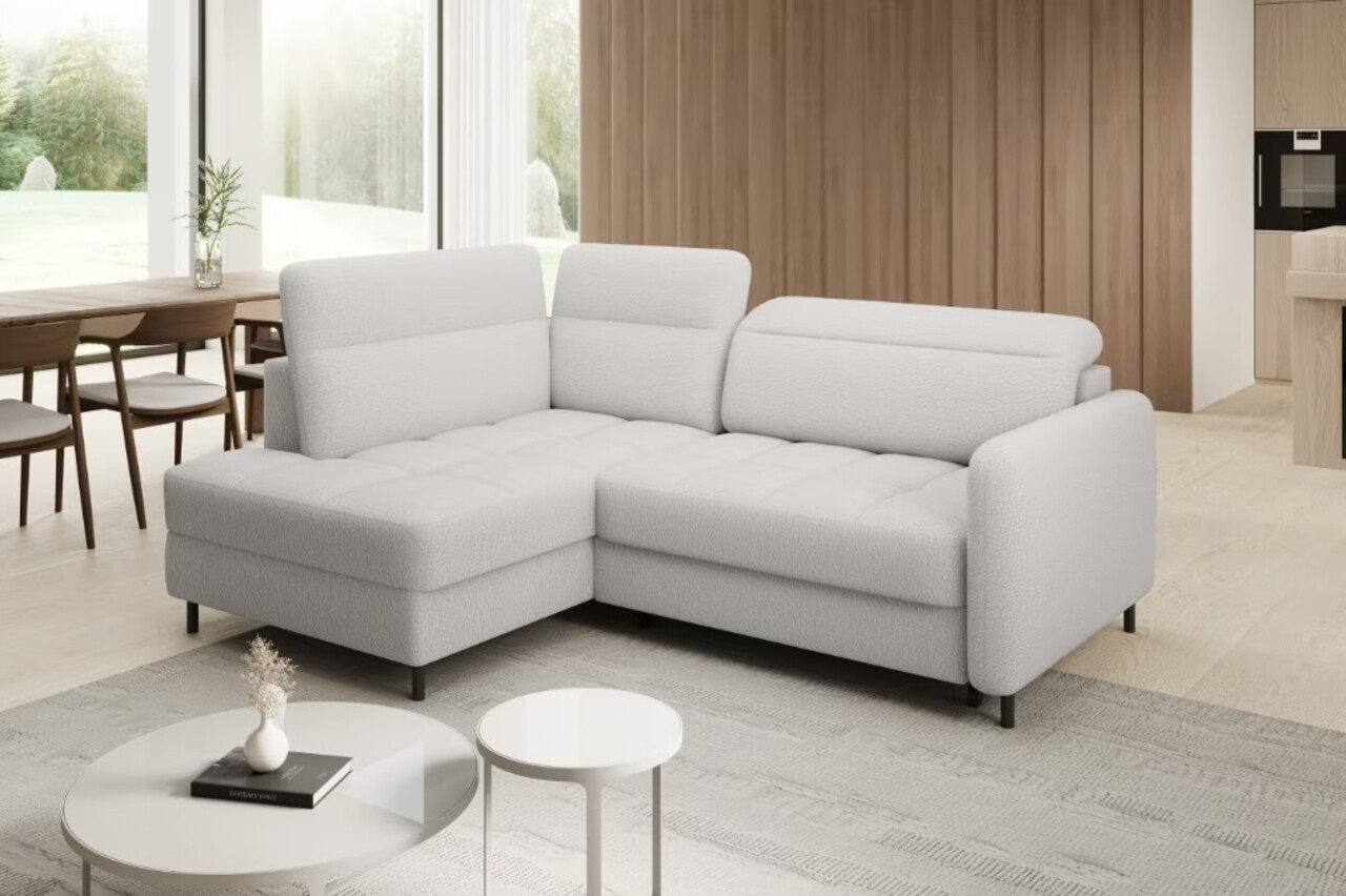 Coltar extensibil stanga 3 locuri ELTAP, LT-01ROY, Barea, 208x160x100 cm, lemn/poliester, alb