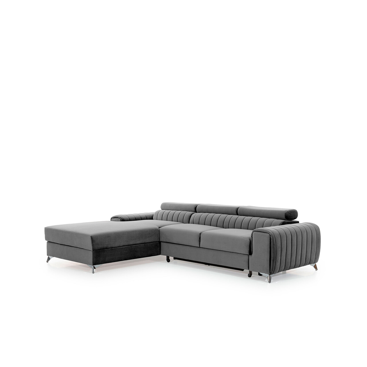 Coltar extensibil stanga 3 locuri ELTAP, LT-03NU, Grayson, 278x205x92 cm, lemn/poliester, gri