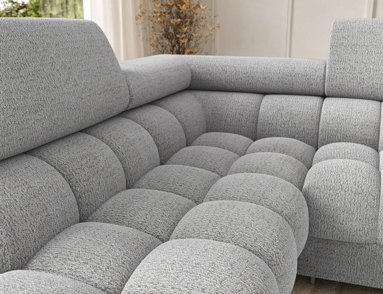 Coltar extensibil stanga 3 locuri ELTAP, LT-03ROY, Feraria, 358x202x93 cm, lemn/poliester, gri deschis