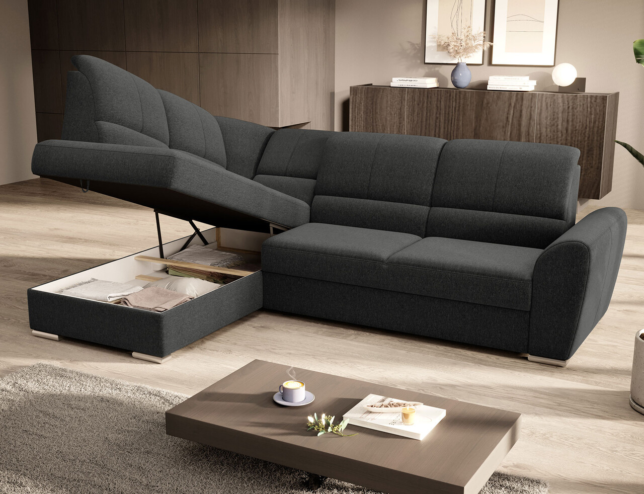 Coltar extensibil stanga 3 locuri ELTAP, LT-04FL, Siber, 270x186x93 cm, lemn/poliester, gri inchis