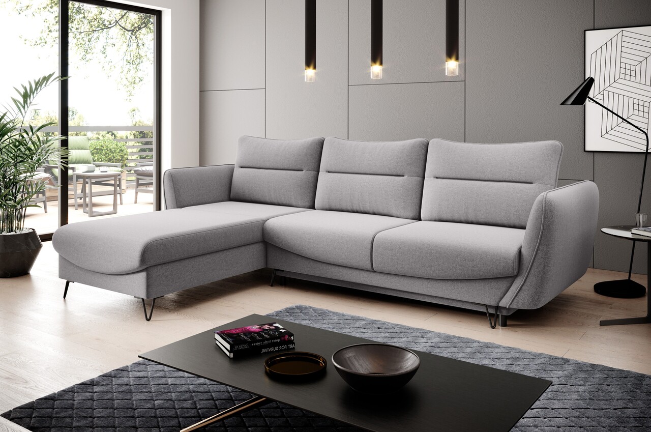 Coltar extensibil stanga 3 locuri ELTAP, LT-04GO, Silva, 276x201x100 cm, lemn/poliester, gri deschis