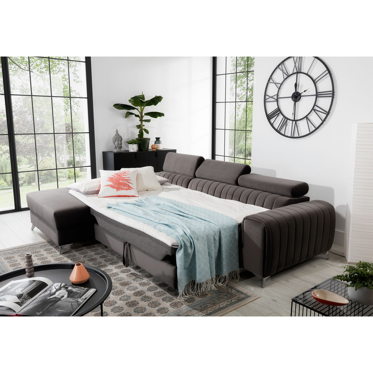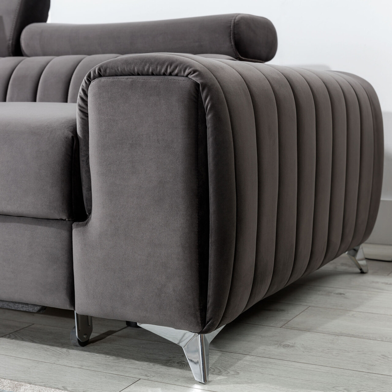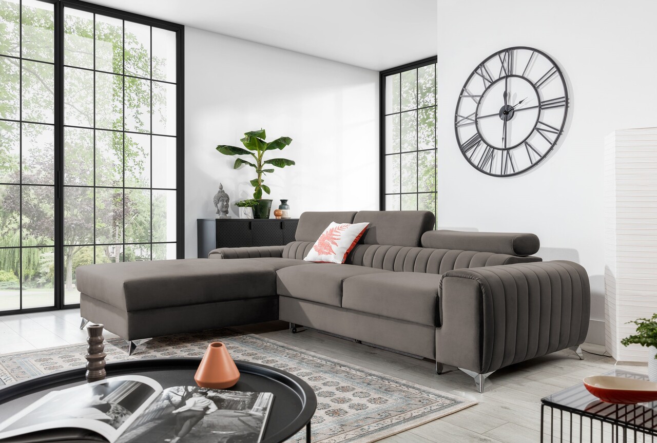 Coltar extensibil stanga 3 locuri ELTAP, LT-04LO, Grayson, 278x205x92 cm, lemn/poliester, gri