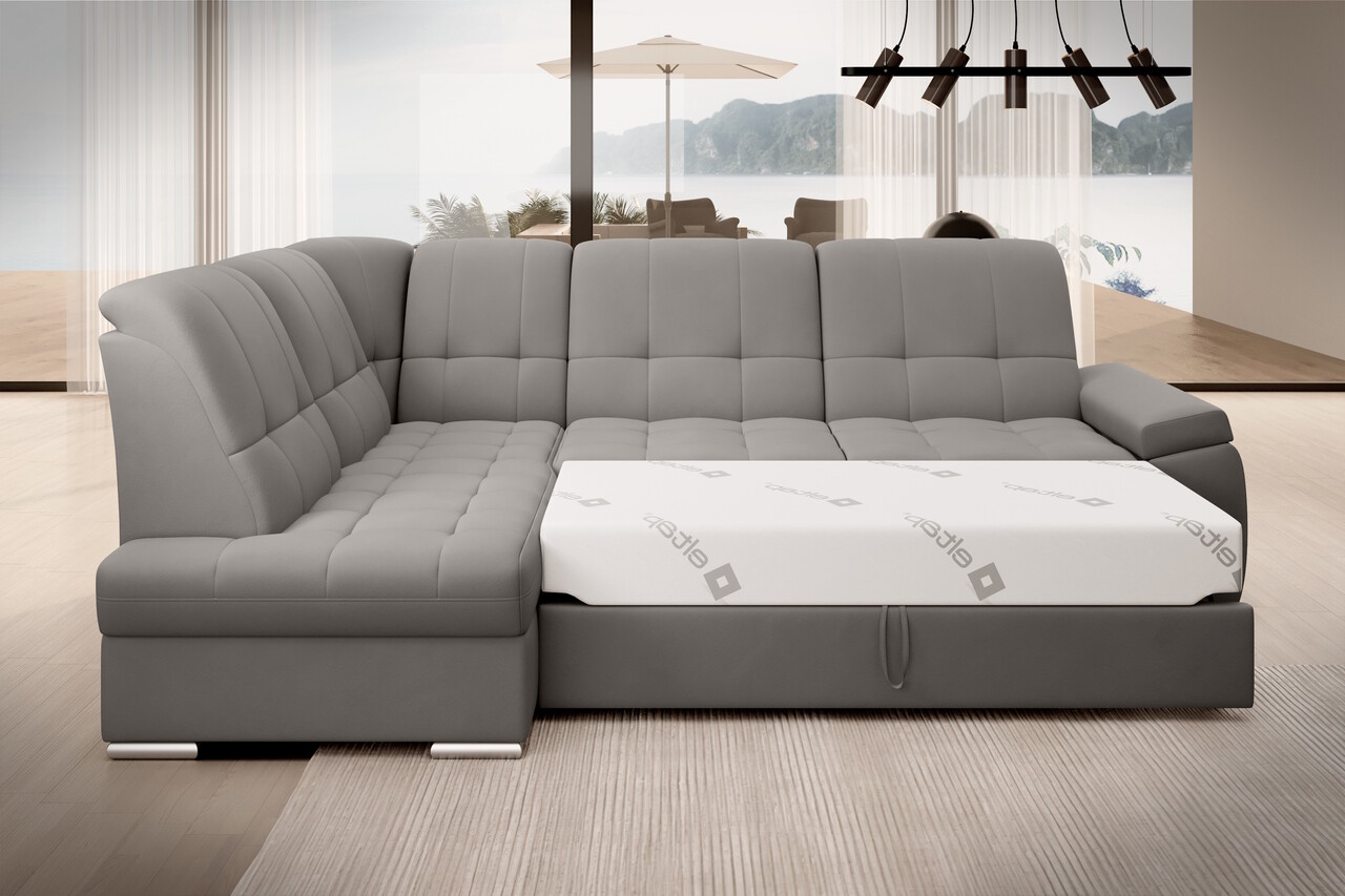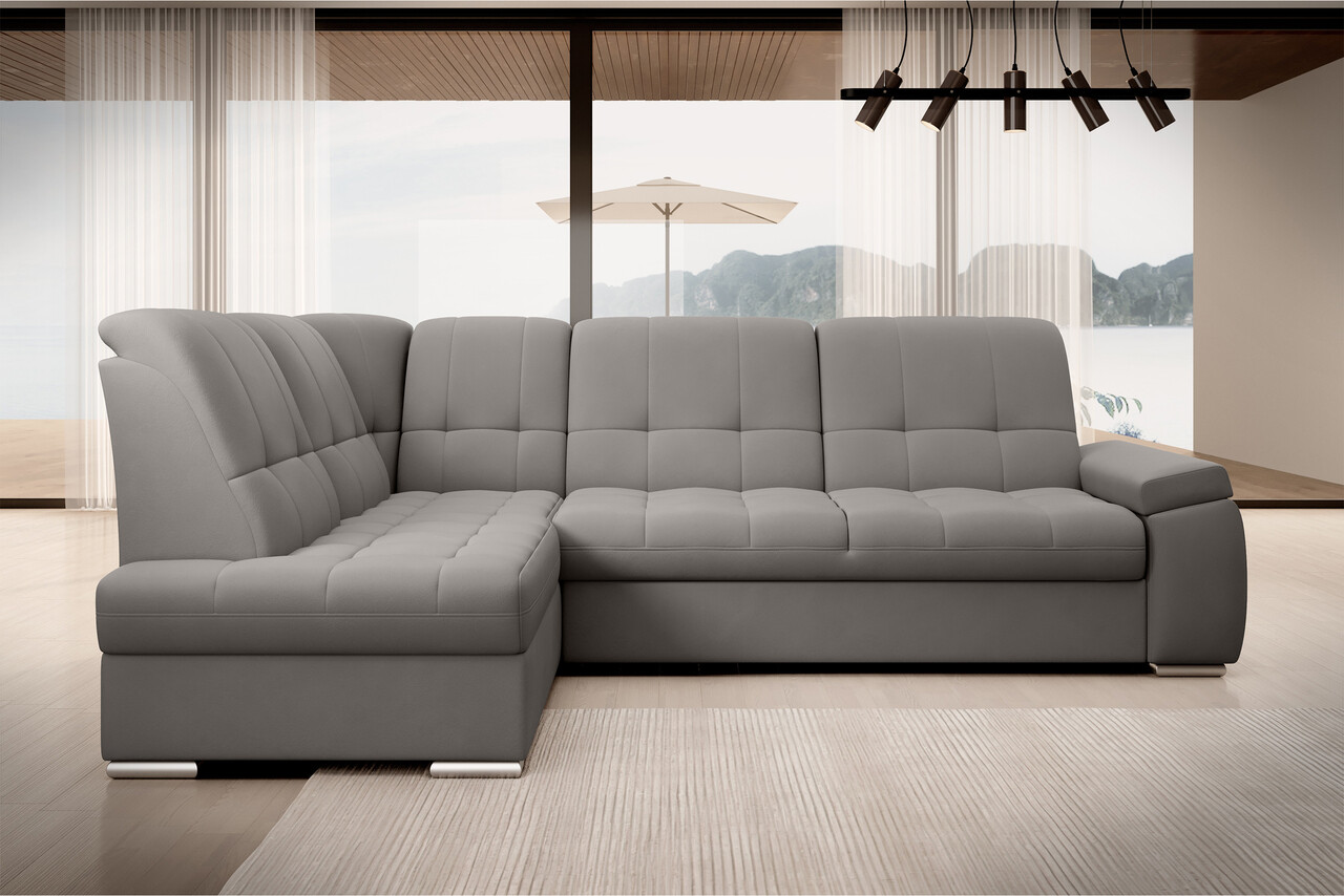 Coltar extensibil stanga 3 locuri ELTAP, LT-04LO, Sado, 272x192x95 cm, lemn/poliester, gri