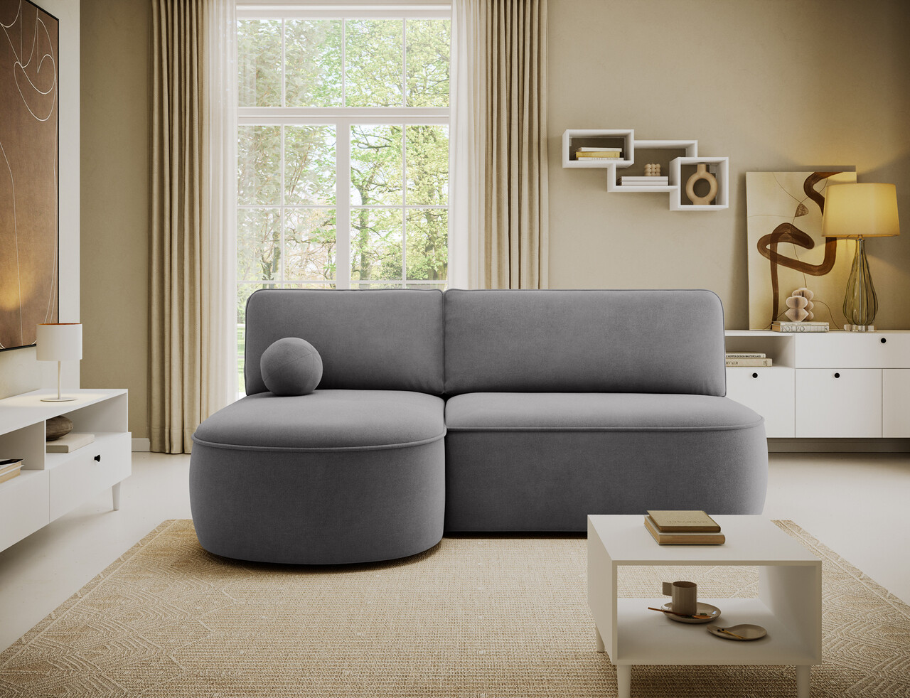 Coltar extensibil stanga 3 locuri ELTAP, LT-04PO, Livosa, 220x144x93 cm, lemn/poliester, gri inchis