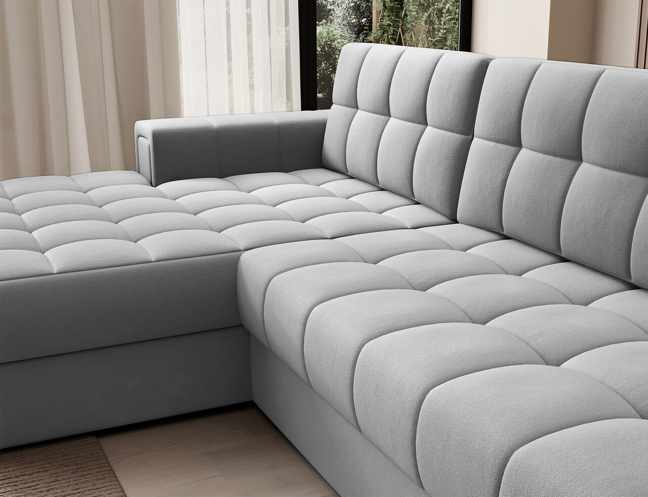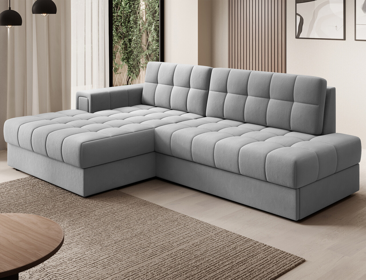 Coltar extensibil stanga 3 locuri ELTAP, LT-04SO, Blezalt, 240x150x82 cm, lemn/poliester, gri deschis