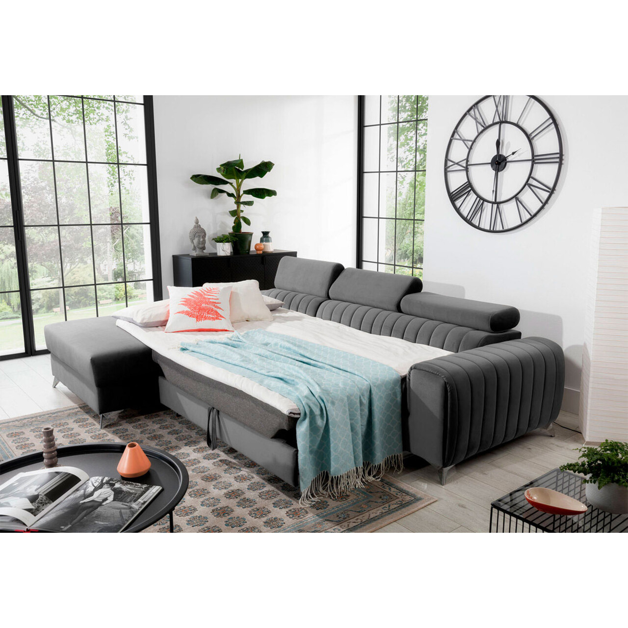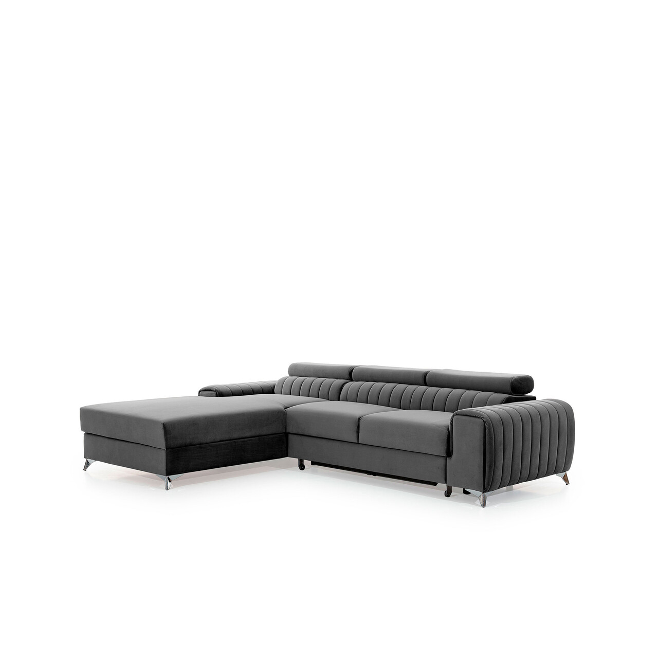 Coltar extensibil stanga 3 locuri ELTAP, LT-04VE, Grayson, 278x205x92 cm, lemn/poliester, gri