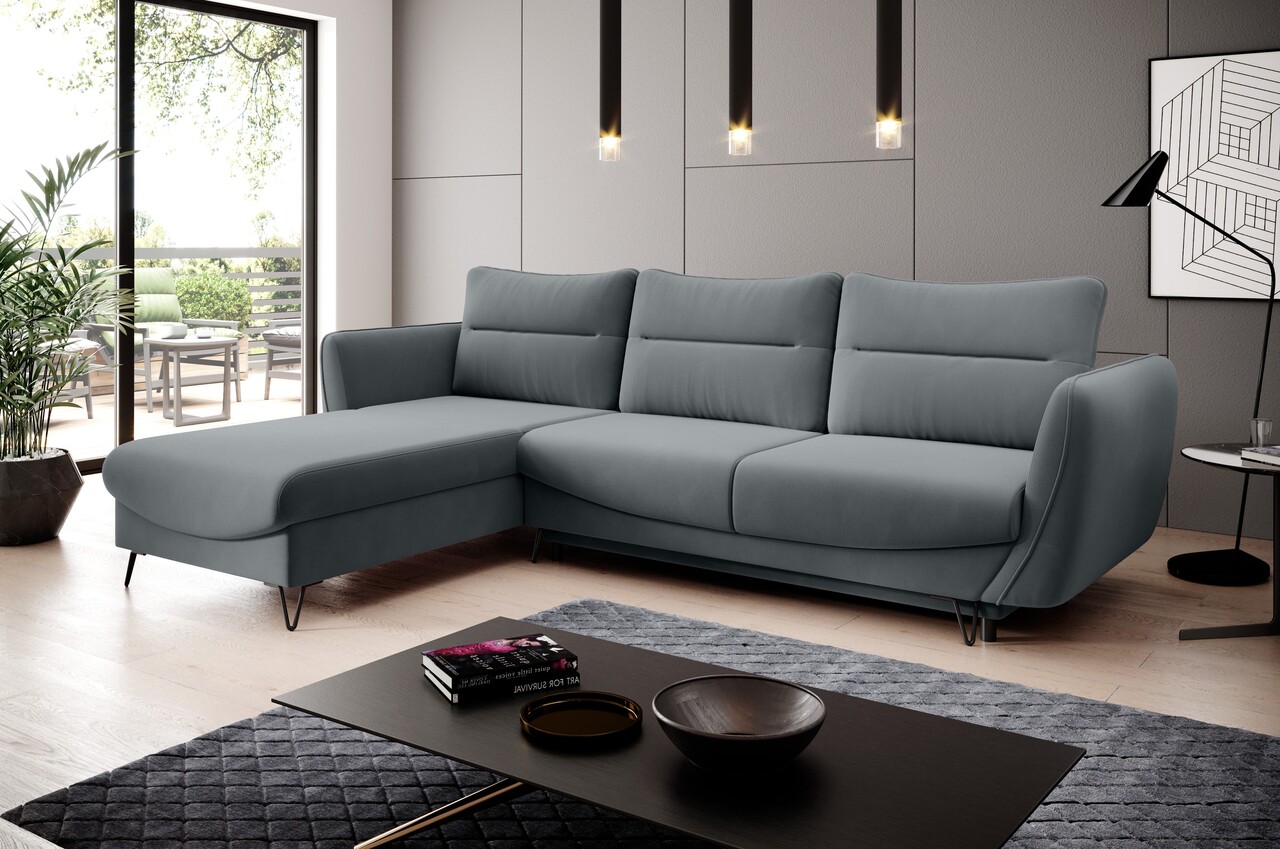 Coltar extensibil stanga 3 locuri ELTAP, LT-04VE, Silva, 276x201x100 cm, lemn/poliester, gri deschis