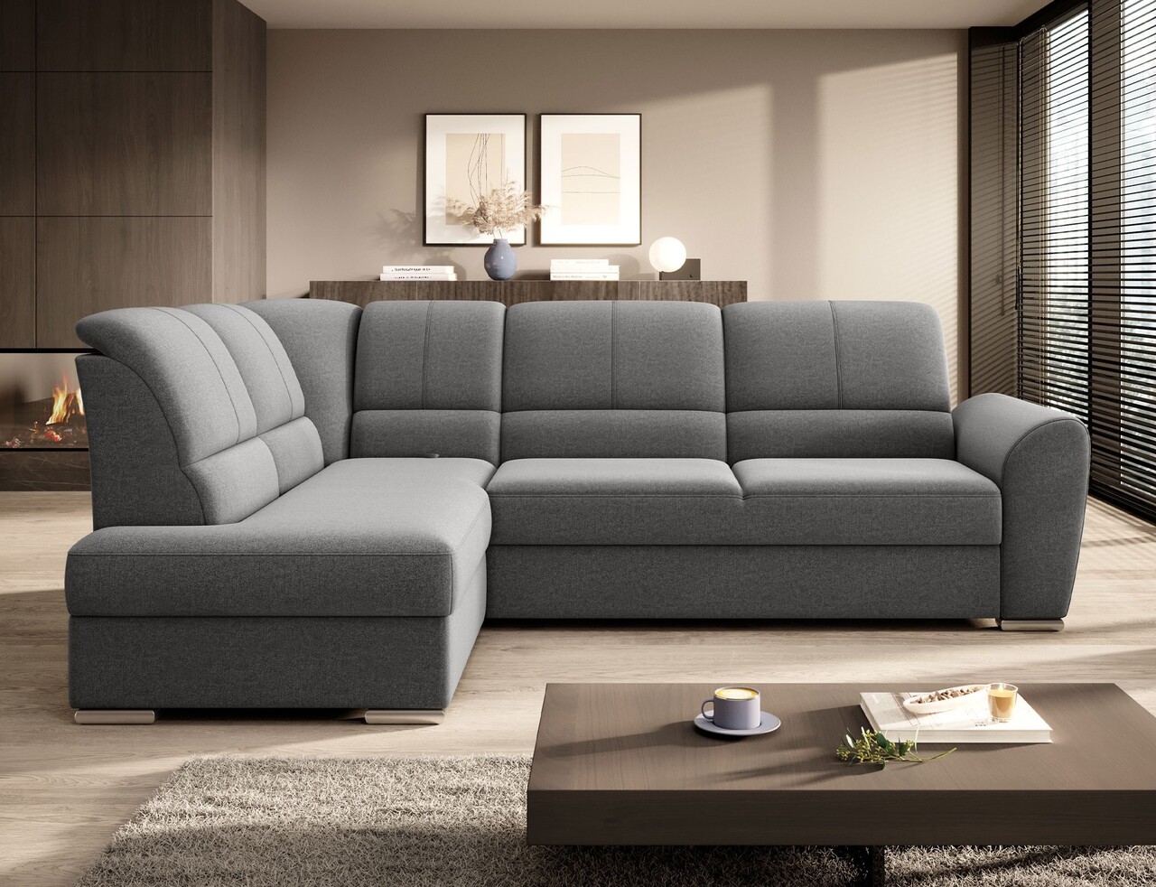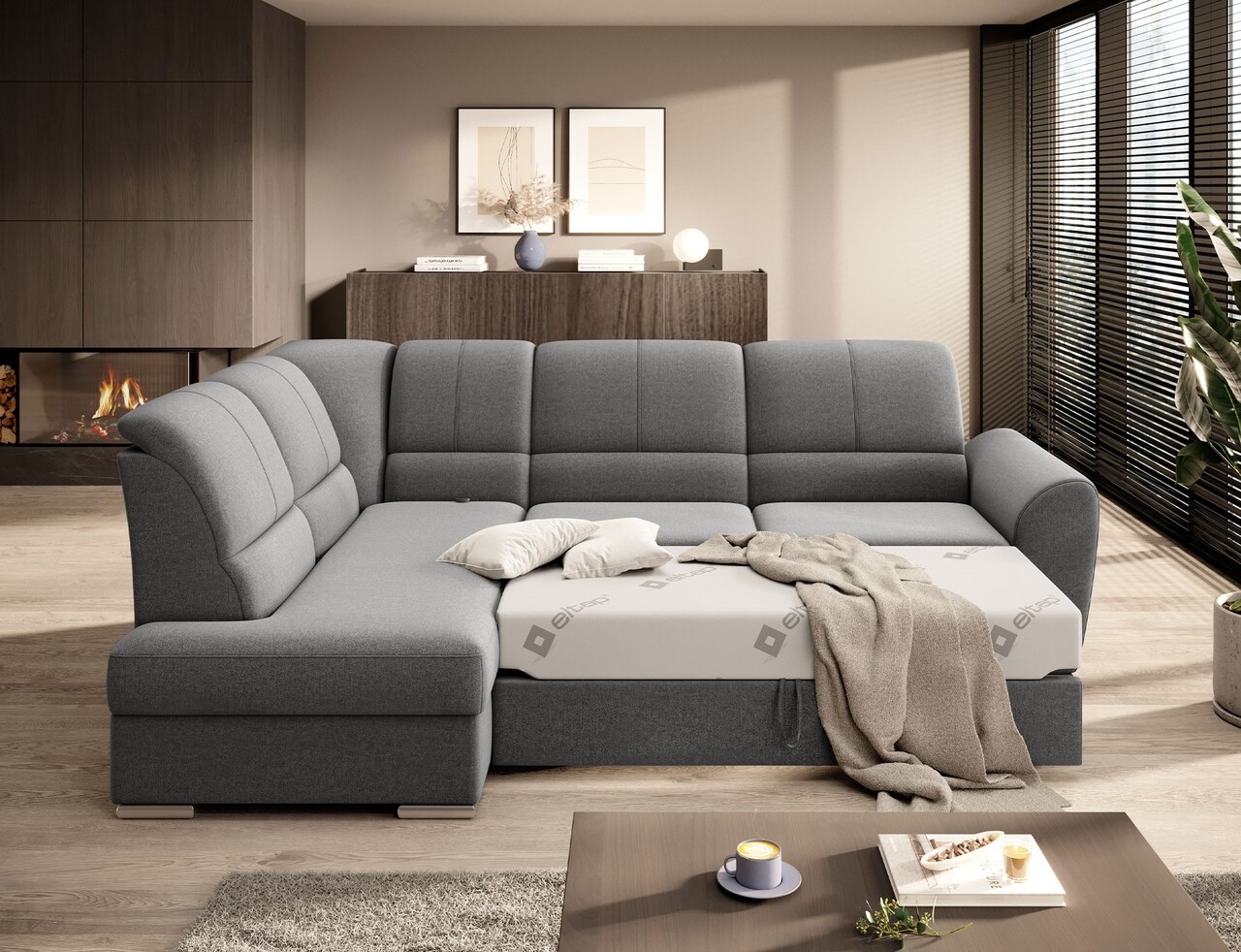 Coltar extensibil stanga 3 locuri ELTAP, LT-05GO, Siber, 270x186x93 cm, lemn/poliester, gri