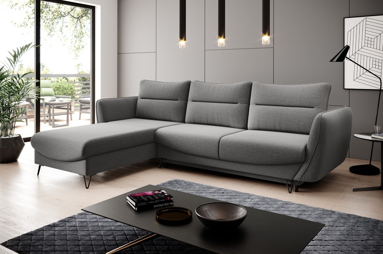Coltar extensibil stanga 3 locuri ELTAP, LT-05GO, Silva, 276x201x100 cm, lemn/poliester, gri