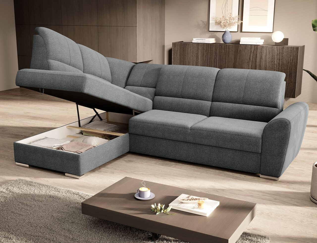 Coltar extensibil stanga 3 locuri ELTAP, LT-05VER, Siber, 270x186x93 cm, lemn/poliester, gri