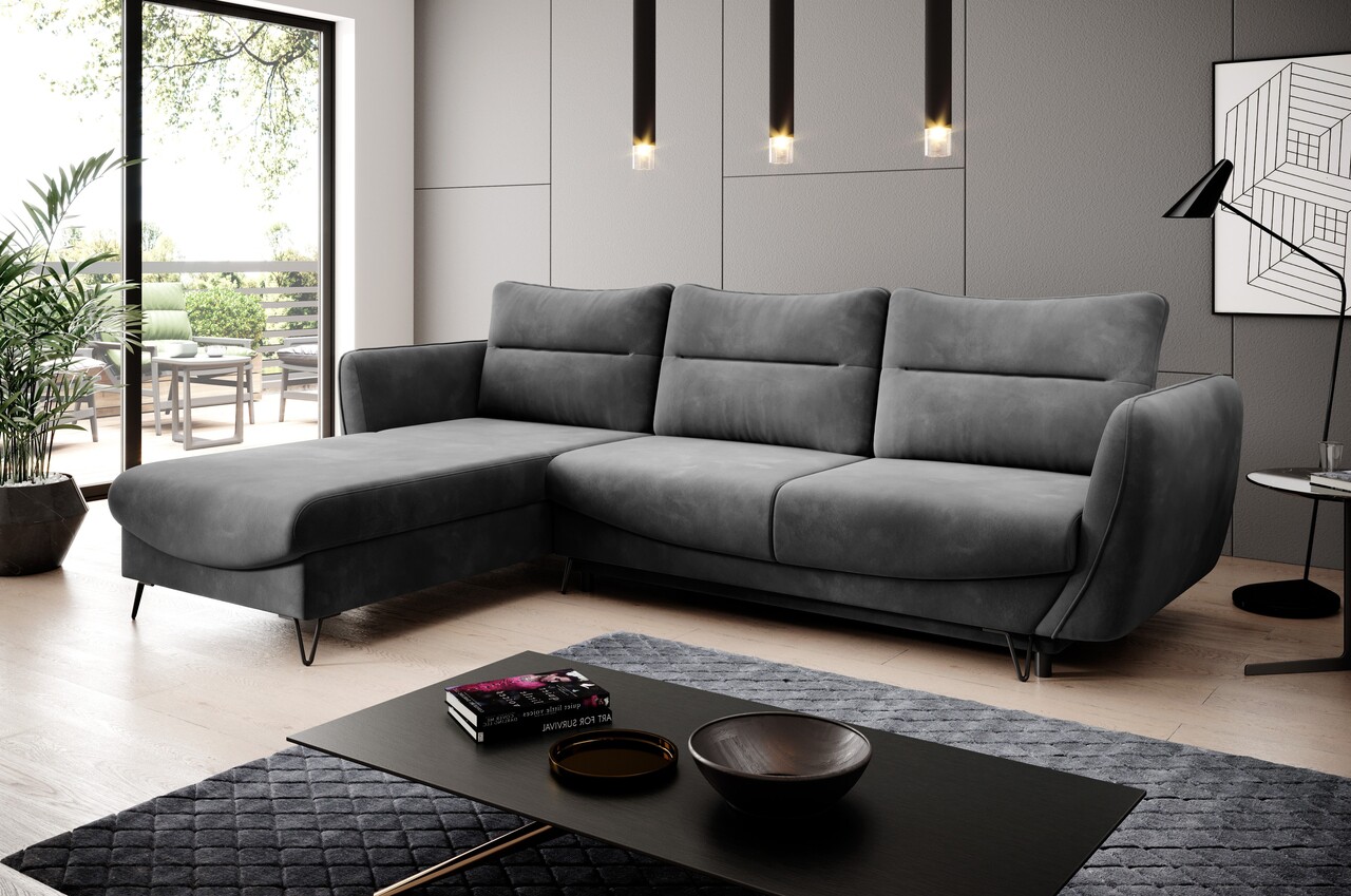 Coltar extensibil stanga 3 locuri ELTAP, LT-06LO, Silva, 276x201x100 cm, lemn/poliester, gri inchis