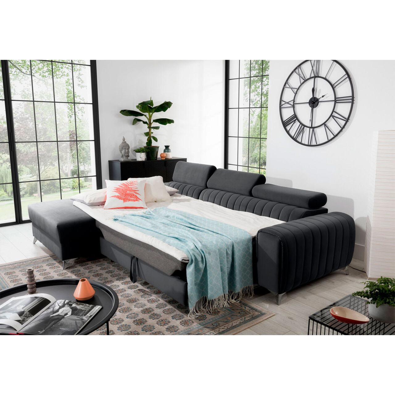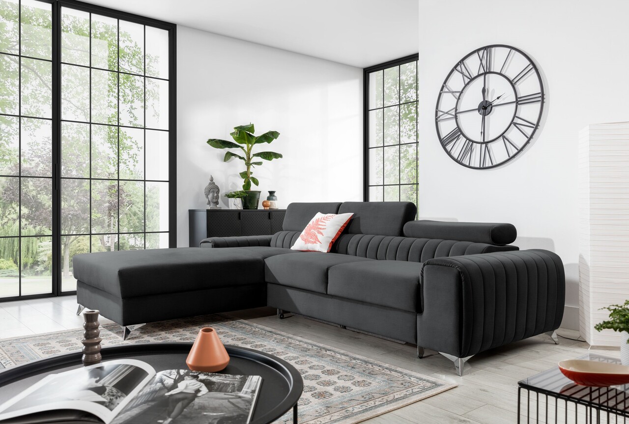 Coltar extensibil stanga 3 locuri ELTAP, LT-06NU, Grayson, 278x205x92 cm, lemn/poliester, gri inchis