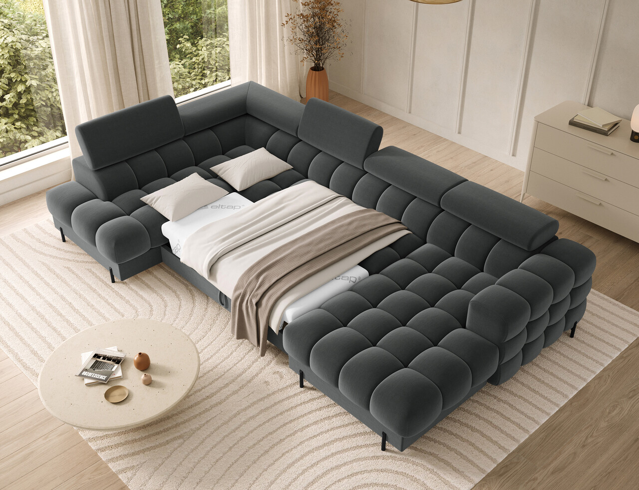 Coltar extensibil stanga 3 locuri ELTAP, LT-06SO, Feraria, 358x202x93 cm, lemn/poliester, gri inchis