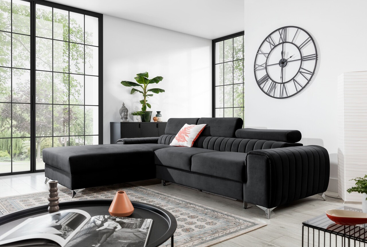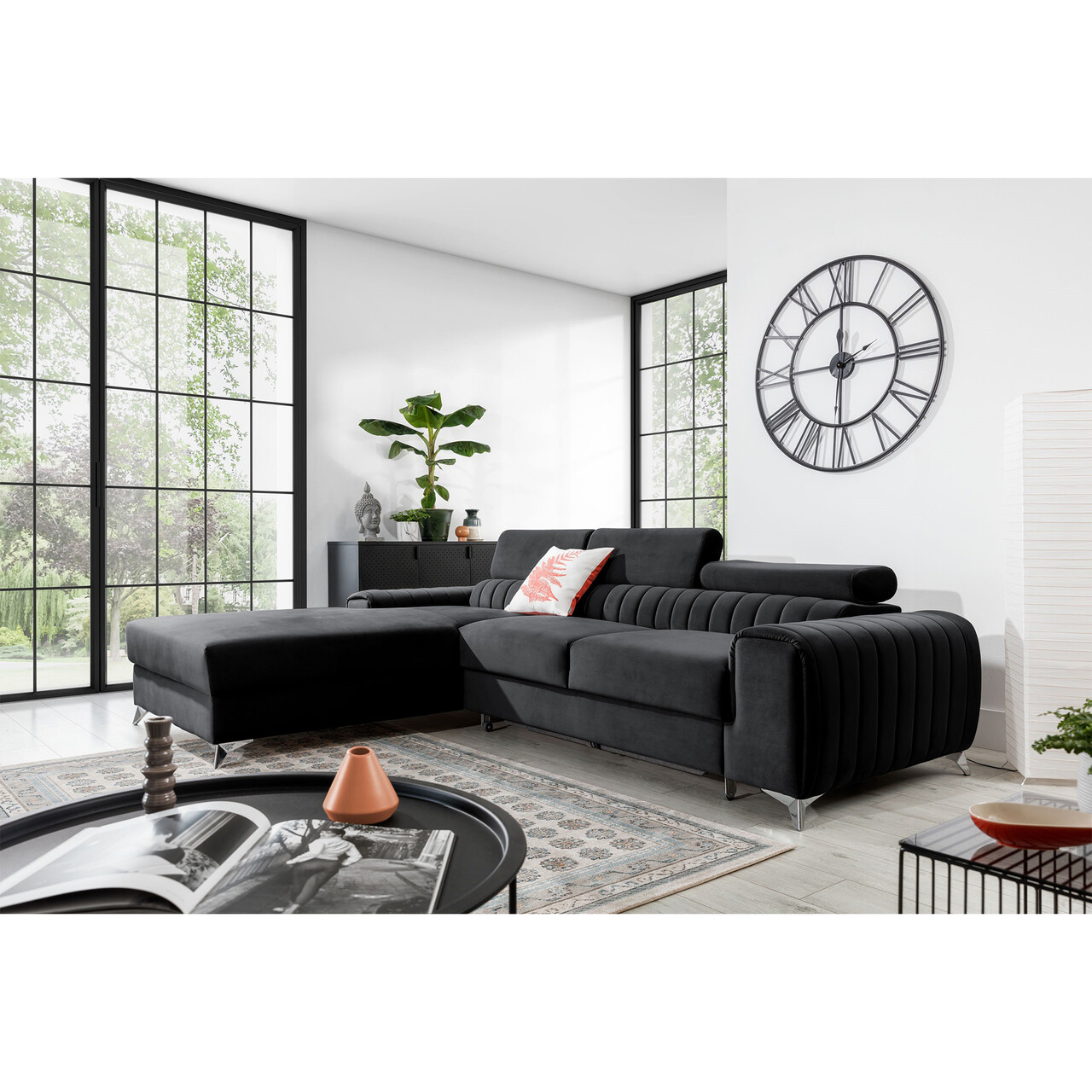 Coltar extensibil stanga 3 locuri ELTAP, LT-06VE, Grayson, 278x205x92 cm, lemn/poliester, gri inchis