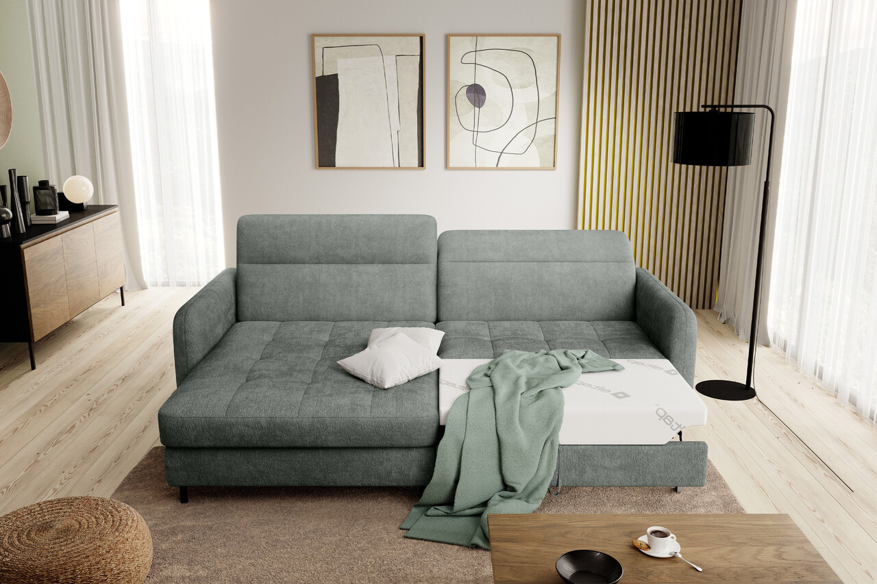 Coltar extensibil stanga 3 locuri ELTAP, LT-100TOU, Gomsi, 228x165x100 cm, lemn/poliester, verde