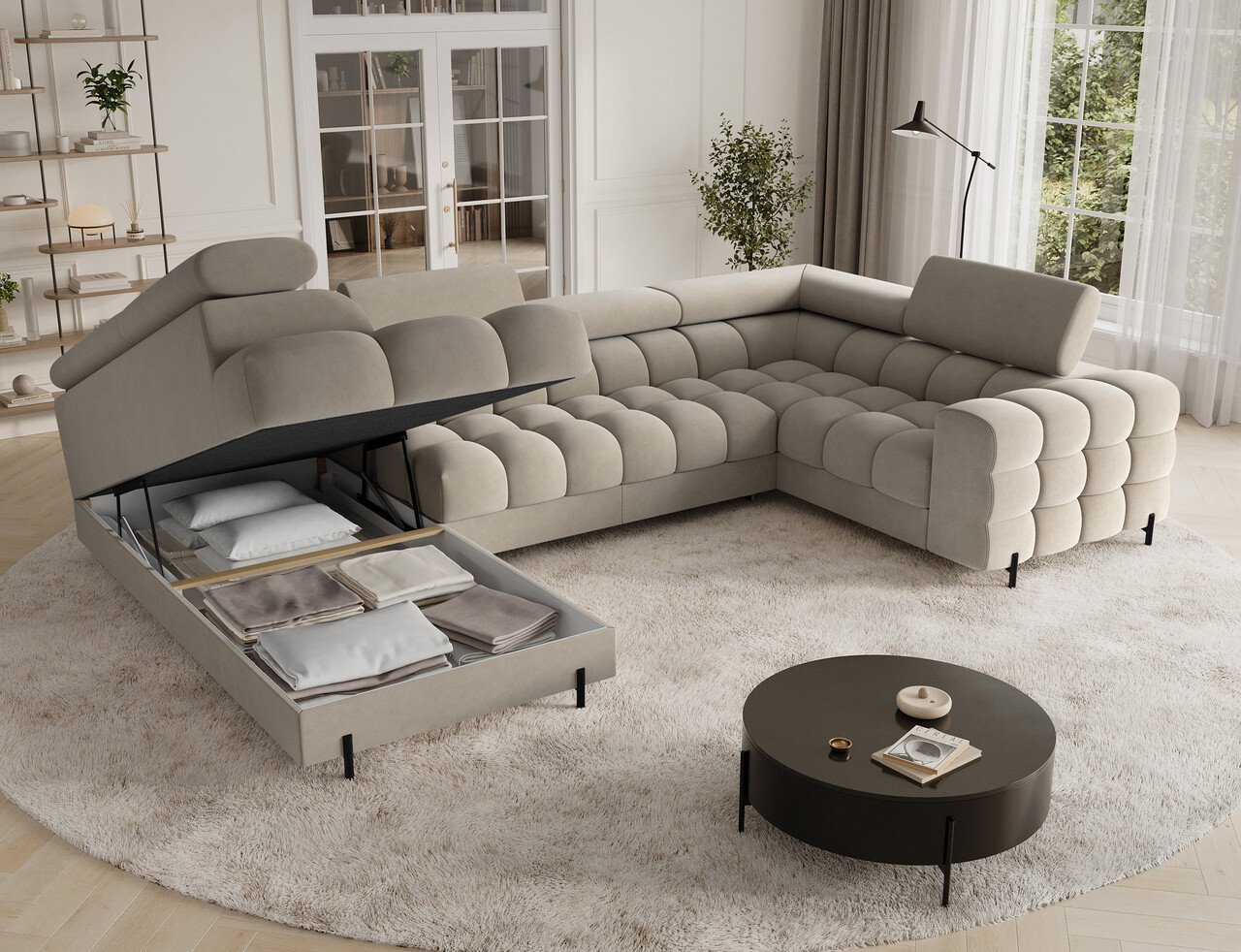 Coltar extensibil stanga 3 locuri ELTAP, LT-18AU, Fectory, 346x205x93 cm, lemn/poliester, bej