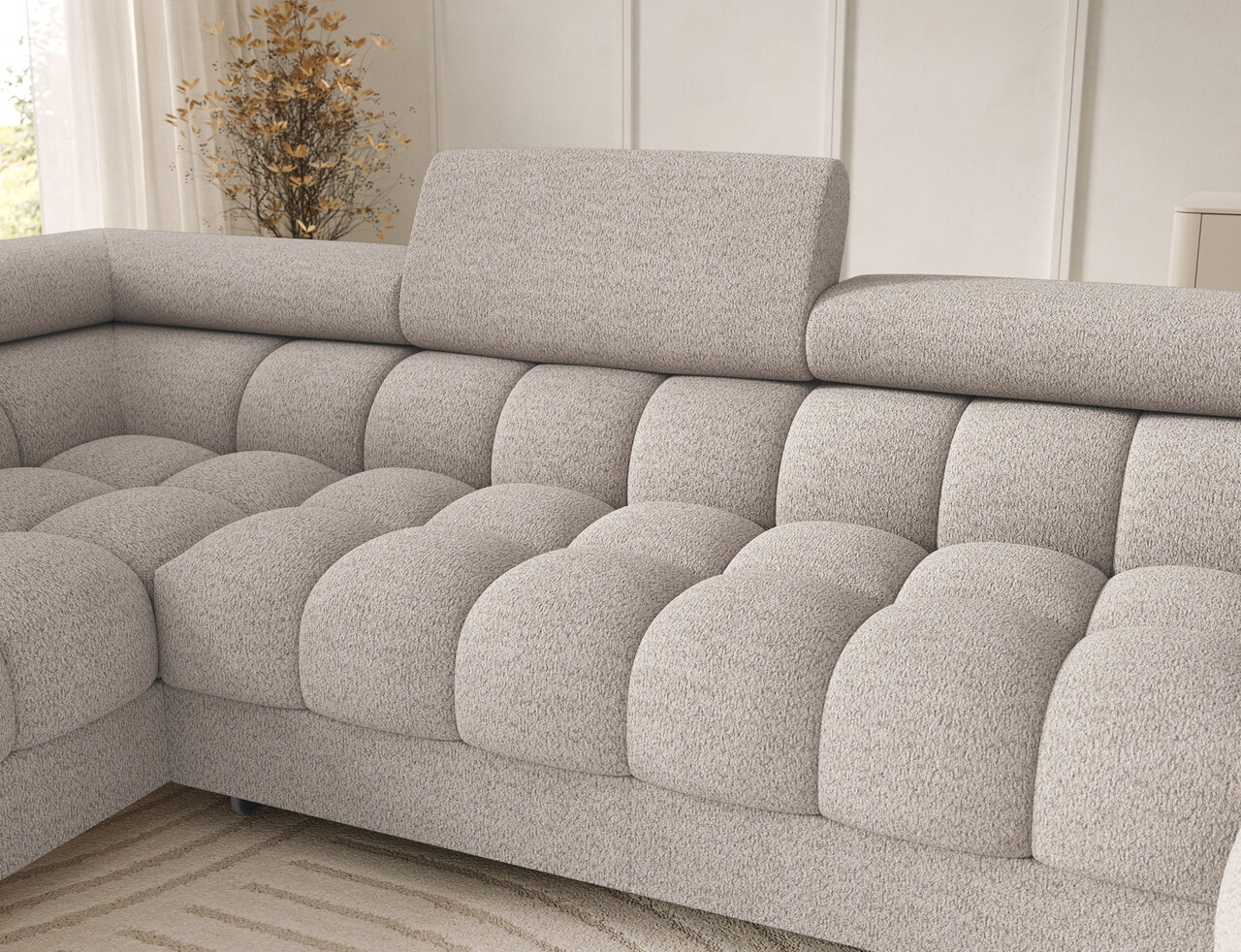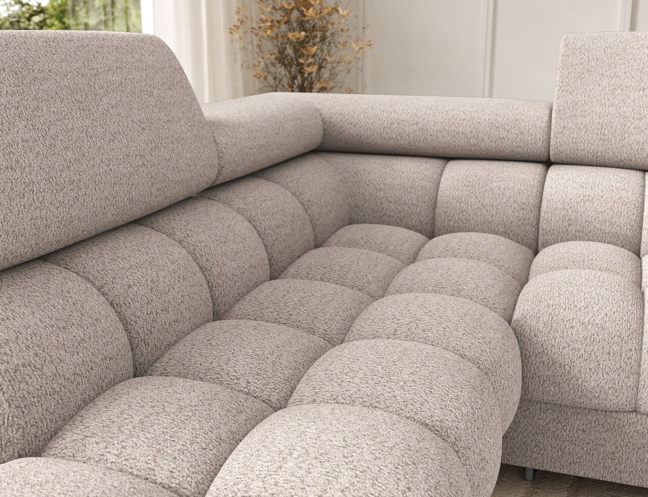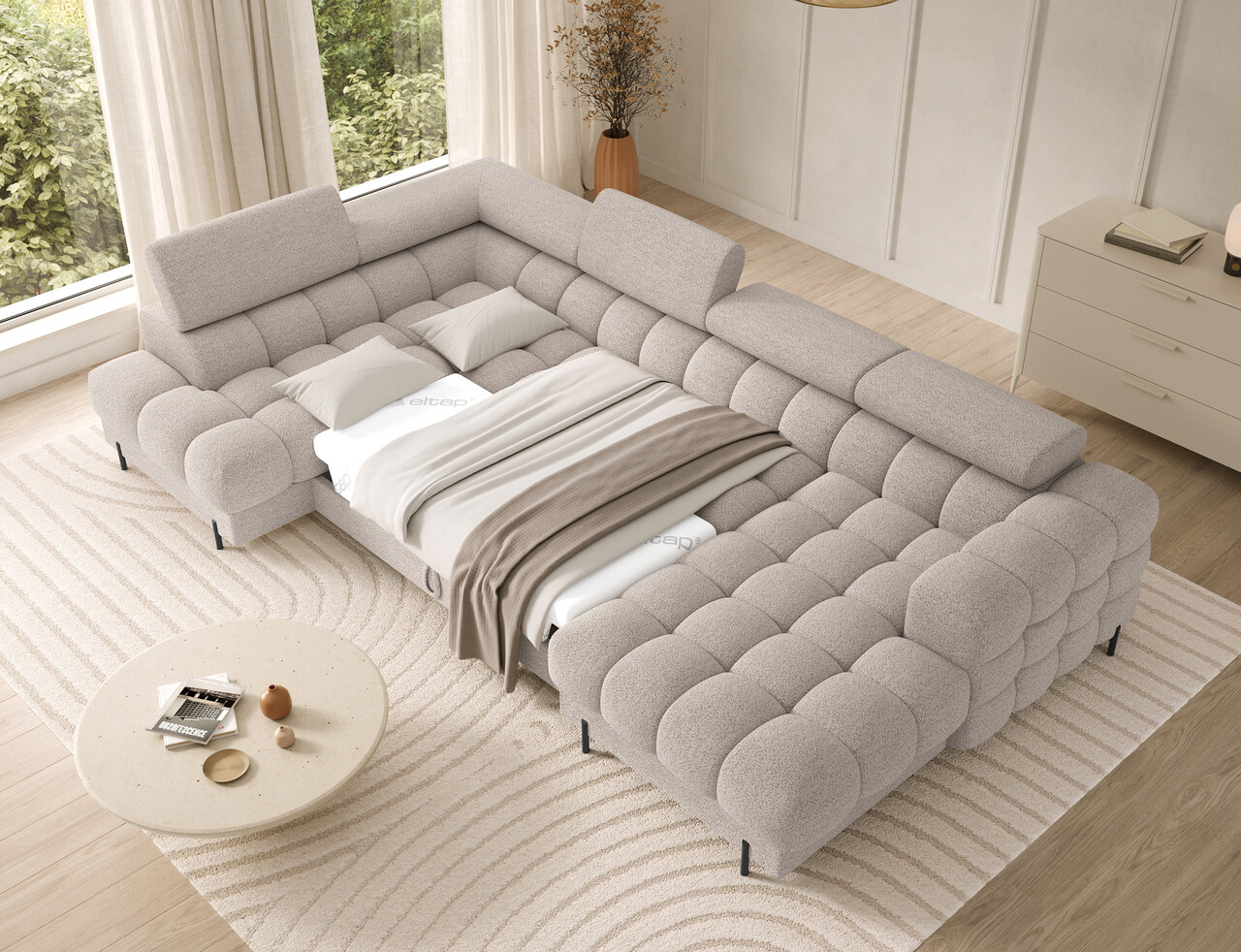 Coltar extensibil stanga 3 locuri ELTAP, LT-18ROY, Feraria, 358x202x93 cm, lemn/poliester, bej deschis