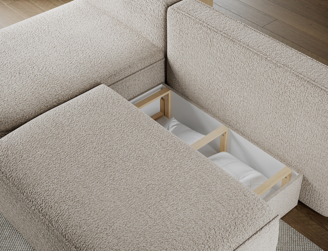 Coltar extensibil stanga 3 locuri ELTAP, LT-18ROY, Livosa, 220x144x93 cm, lemn/poliester, bej inchis