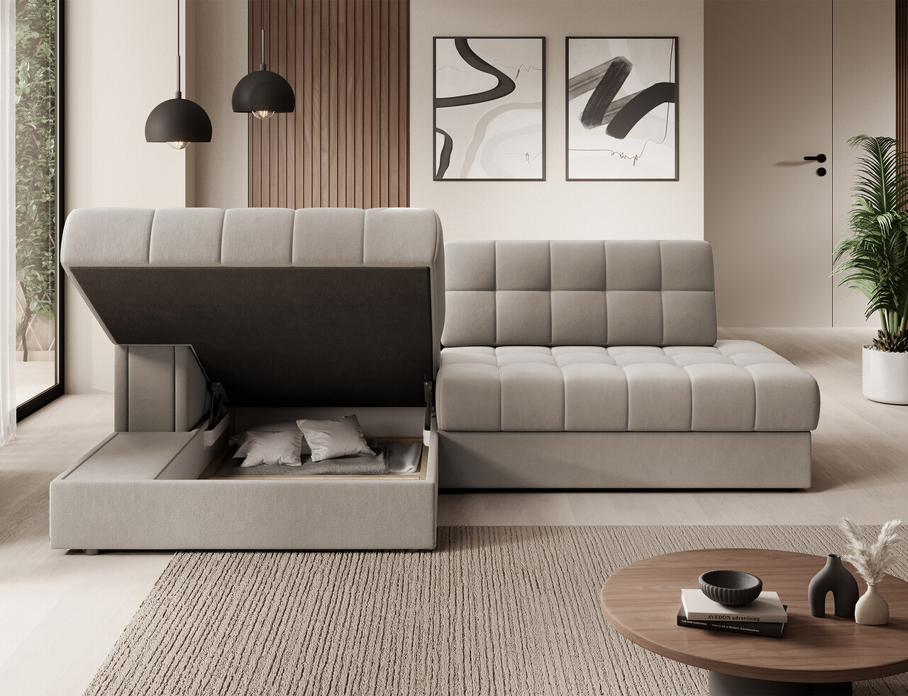 Coltar extensibil stanga 3 locuri ELTAP, LT-18SO, Blezalt, 240x150x82 cm, lemn/poliester, bej deschis