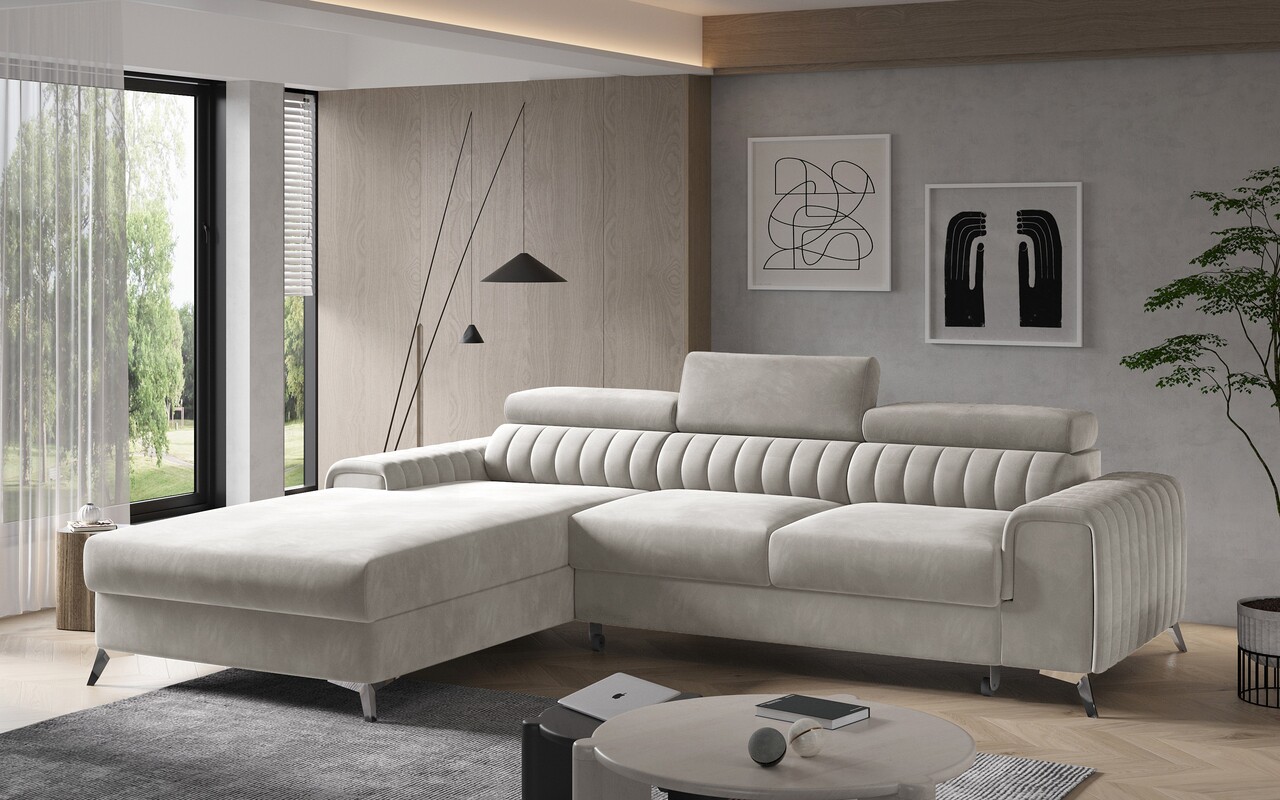 Coltar extensibil stanga 3 locuri ELTAP, LT-18SO, Grayson, 278x205x92 cm, lemn/poliester, bej deschis