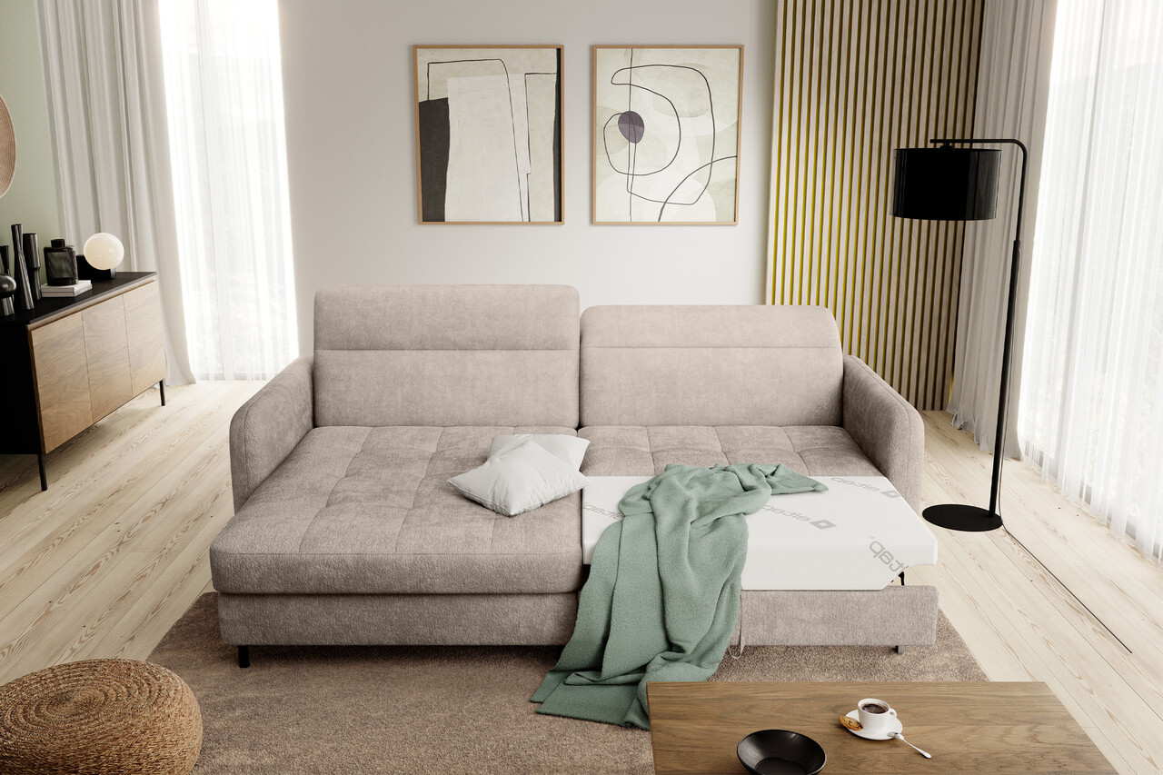 Coltar extensibil stanga 3 locuri ELTAP, LT-18TOU, Gomsi, 228x165x100 cm, lemn/poliester, bej