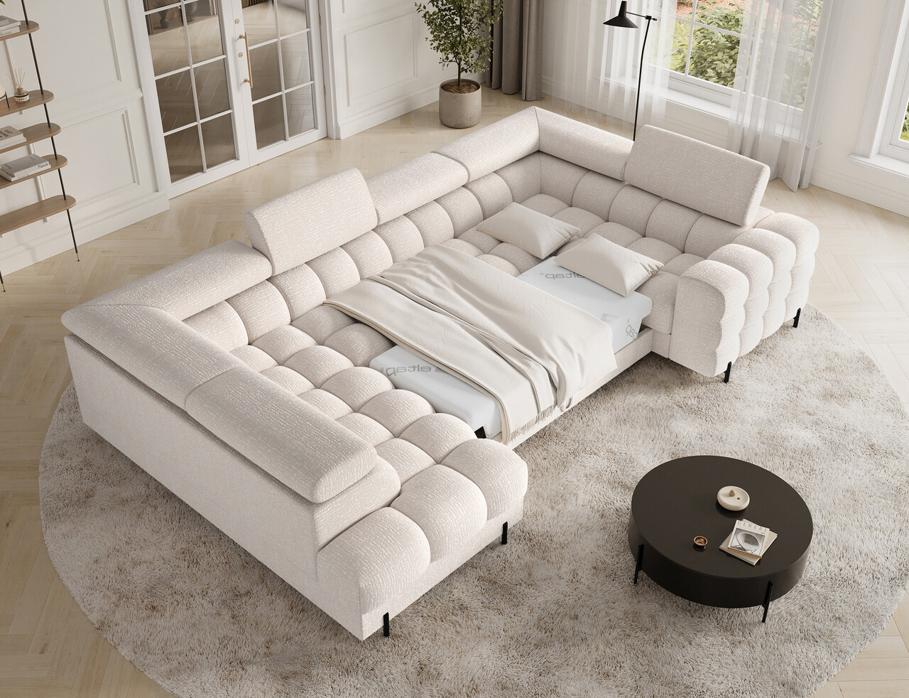Coltar extensibil stanga 3 locuri ELTAP, LT-20BAF, Fectory, 346x205x93 cm, lemn/poliester, bej deschis