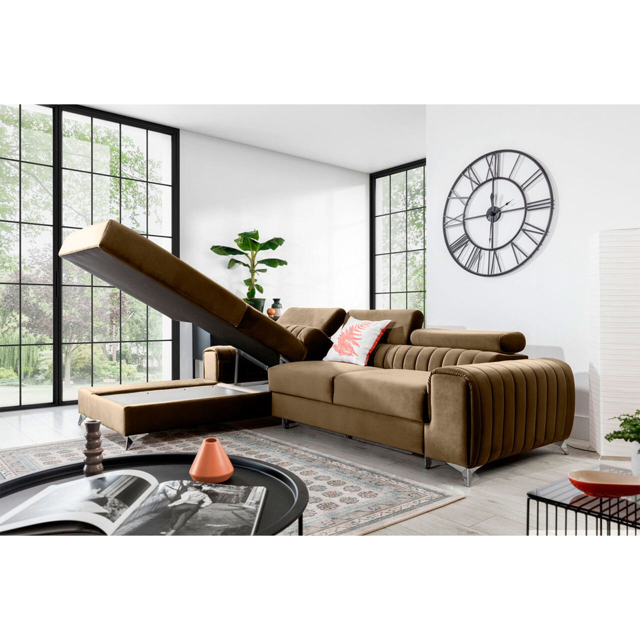 Coltar extensibil stanga 3 locuri ELTAP, LT-20NU, Grayson, 278x205x92 cm, lemn/poliester, maro deschis